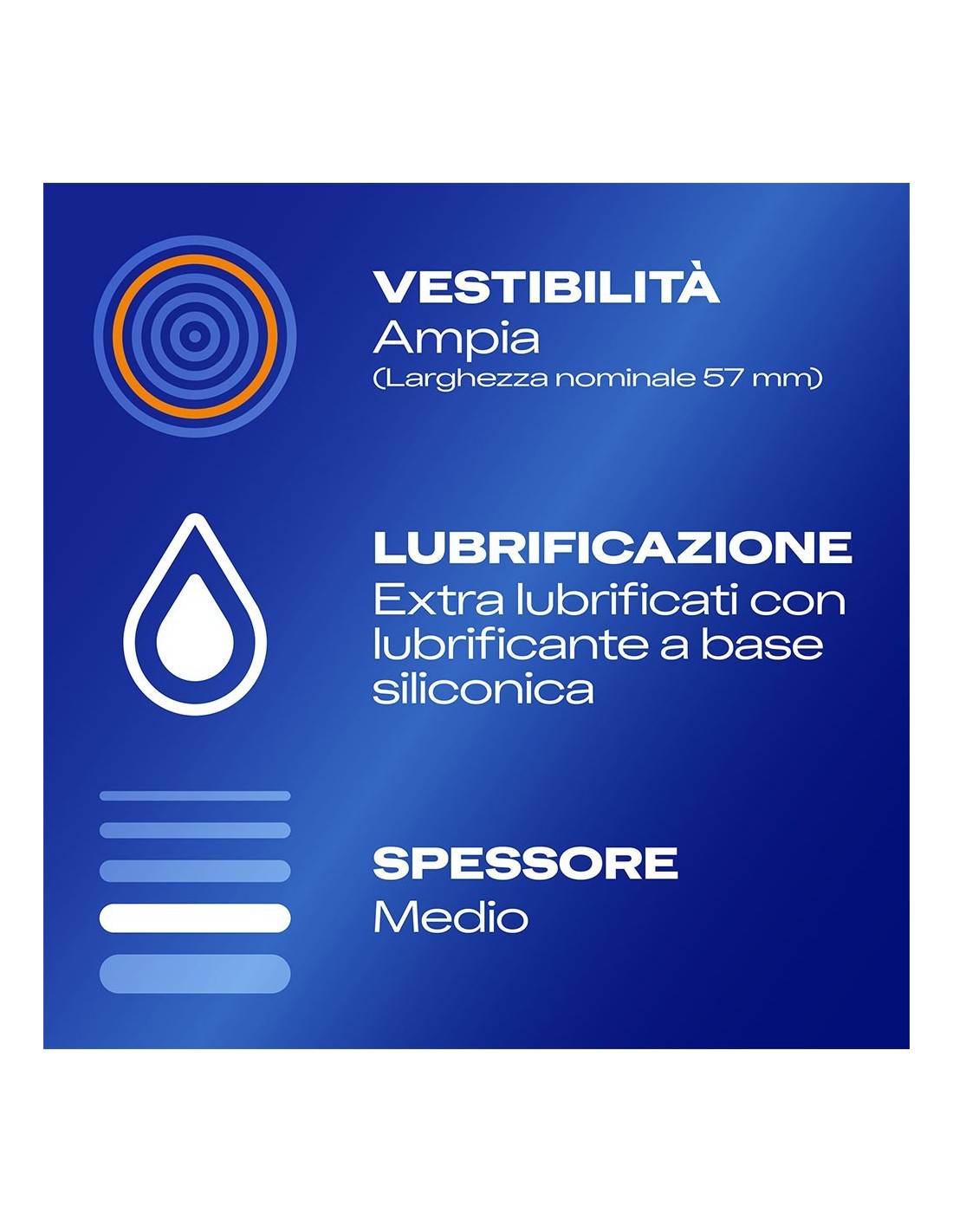 Il preservativo più amato diventa XL: profilattici in lattice con larghezza nominale di 57 mm, perfetti per le persone che desiderano una vestibilità più confortevole.