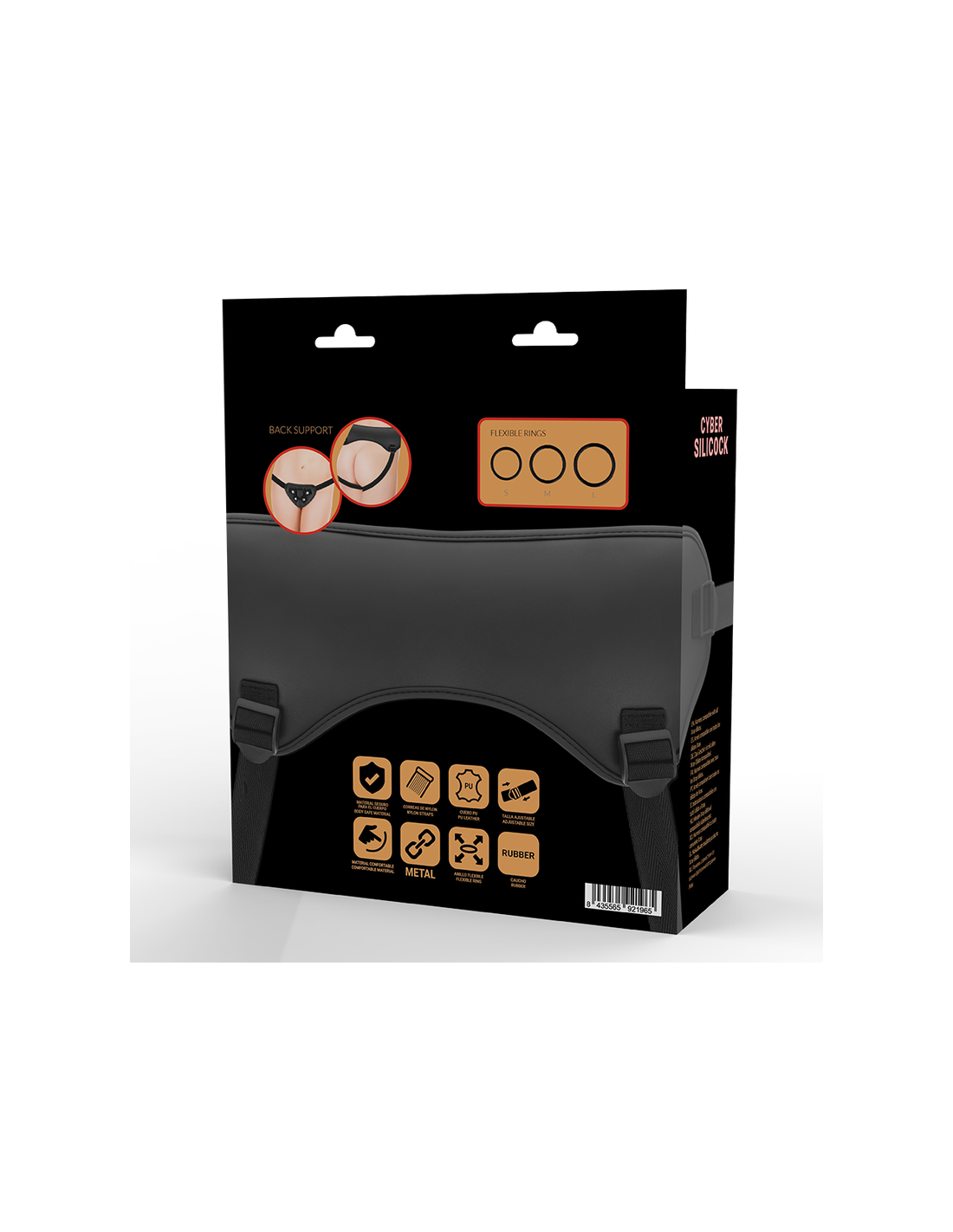 - Imbracatura universale CYBERSILICOCK ©, dotata di 3 anelli per fissare il tuo dildo. Compatibile con la maggior parte dei modelli della collezione CYBERSILICOCK ©.
