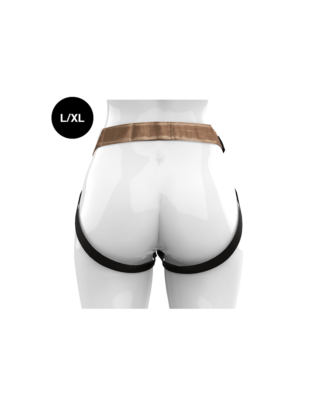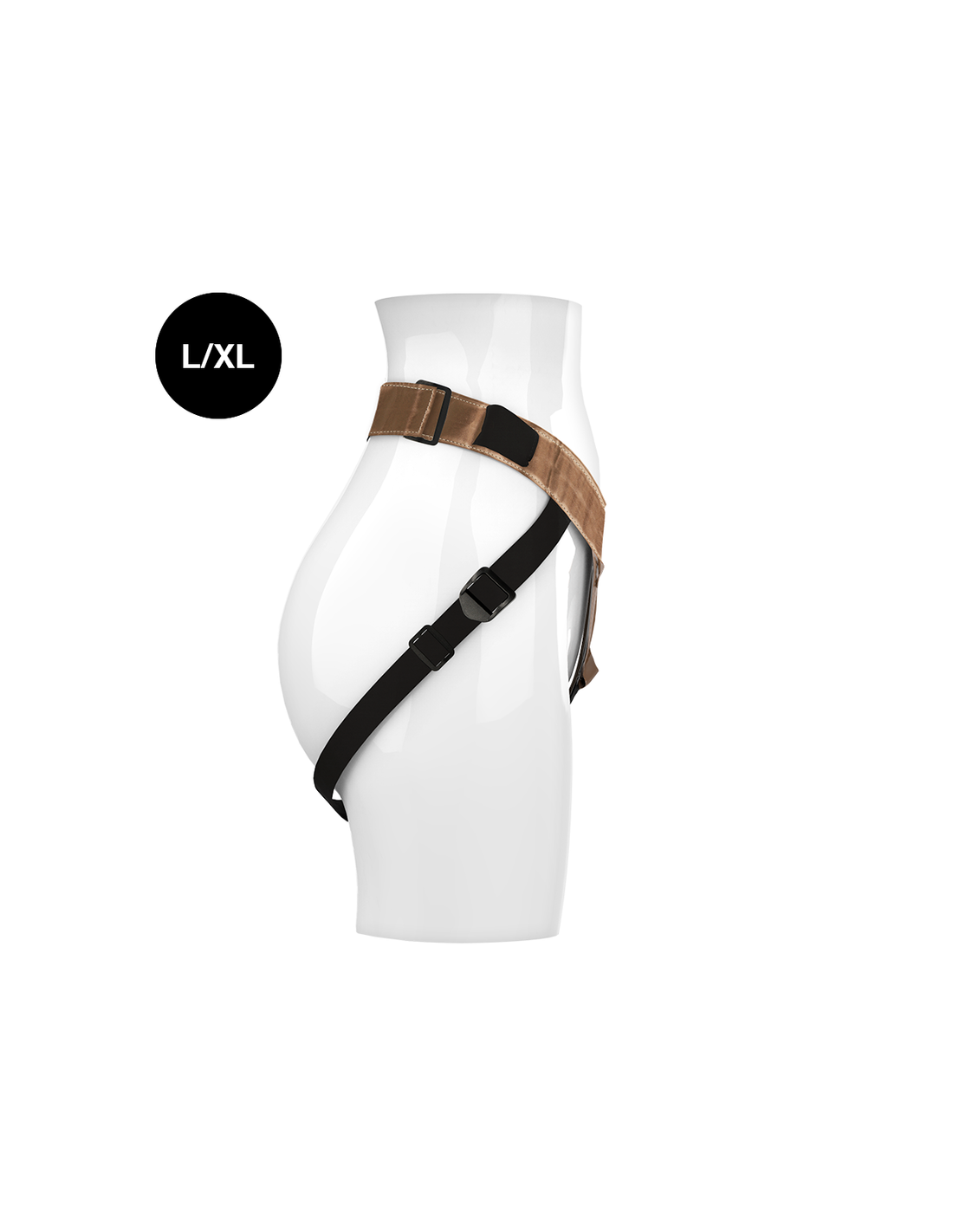 Questa imbracatura regolabile è adatta alle taglie dalla 34 alla 46. Ti consigliamo di scegliere con attenzione tra S/M e L/XL. La cintura in vita e i cinturini regolabili sui glutei possono essere adattati separatamente, così da modellare l’imbracatura sulle tue forme per un comfort su misura.