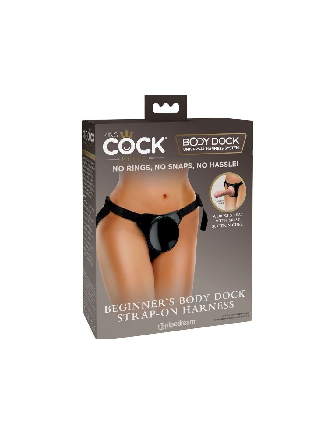 Le cinghie in nylon del Body Dock si regolano facilmente per adattarsi alla maggior parte delle forme e dimensioni del corpo. La piastra di aggancio ha un diametro di 8,6 cm e supporta qualsiasi dildo a ventosa con diametro inferiore a questa misura.