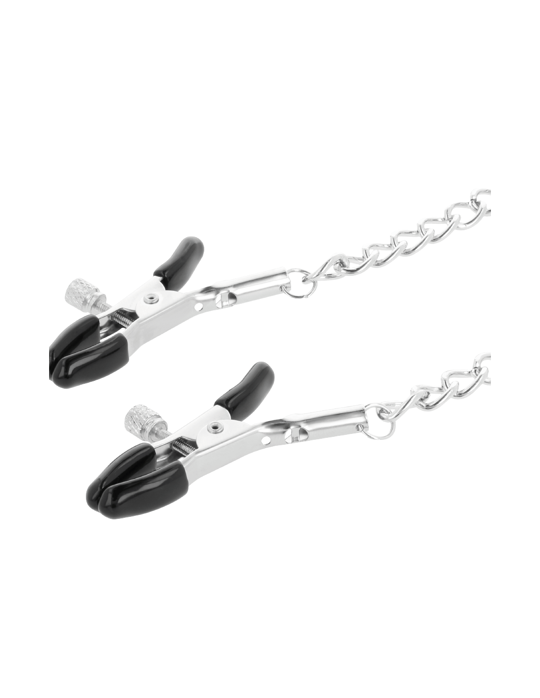Scopri i morsetti per capezzoli a catena di Darkness! Unisex e semplicissimi da usare, questi morsetti sono realizzati in acciaio inossidabile e alluminio, completamente privi di nichel per garantire comfort e sicurezza. Perfetti sia per esplorare i tuoi desideri più nascosti sia come accessorio per aggiungere stimolazione durante l’intimità con il tuo partner.