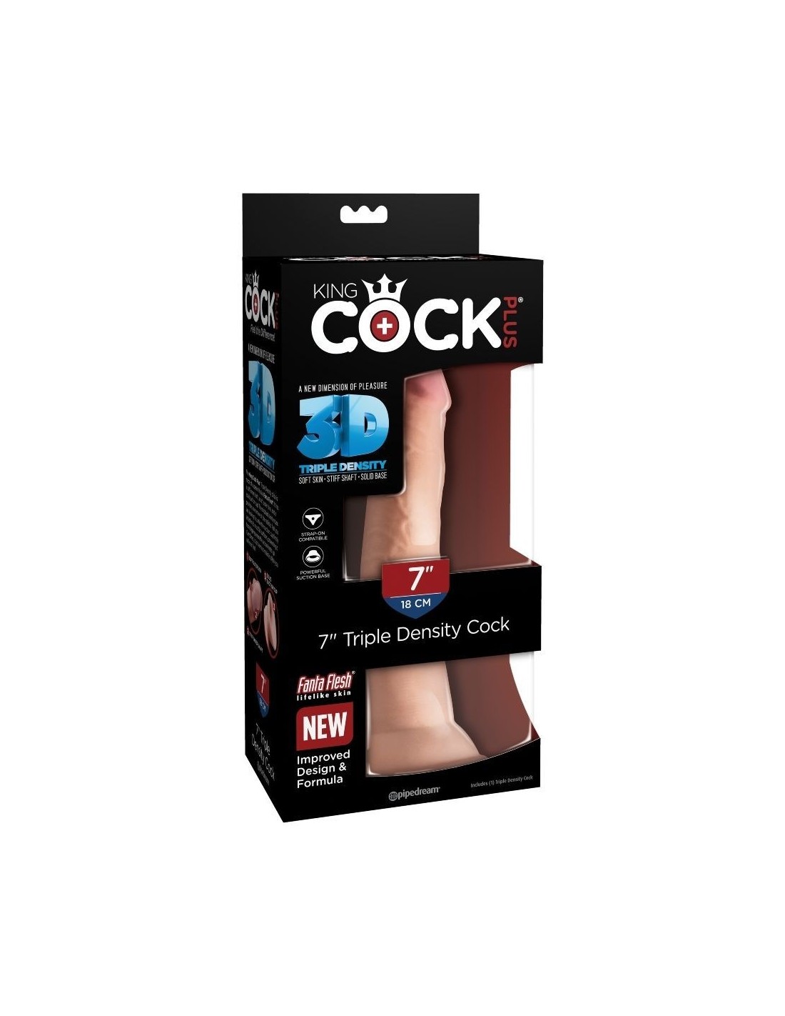 Il dildo King Cock Plus Triple Density presenta un'anima interna rigida avvolta da una pelle esterna morbida, con dettagli realistici che riproducono fedelmente la texture e una base a ventosa robusta e affidabile. Grazie a un design e a una formula migliorati, offre un realismo superiore, combinando un'estetica naturale con la giusta flessibilità per ricreare la sensazione di un vero pene.