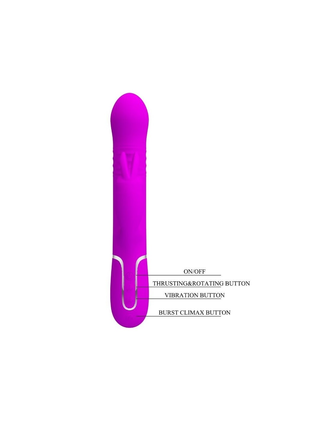 Dotato di due potenti motori, uno posizionato sulla punta e l'altro sul braccio esterno, ti offre la vibrazione ideale grazie a 7 intensità e ritmi diversi che ti condurranno a un potente climax misto.