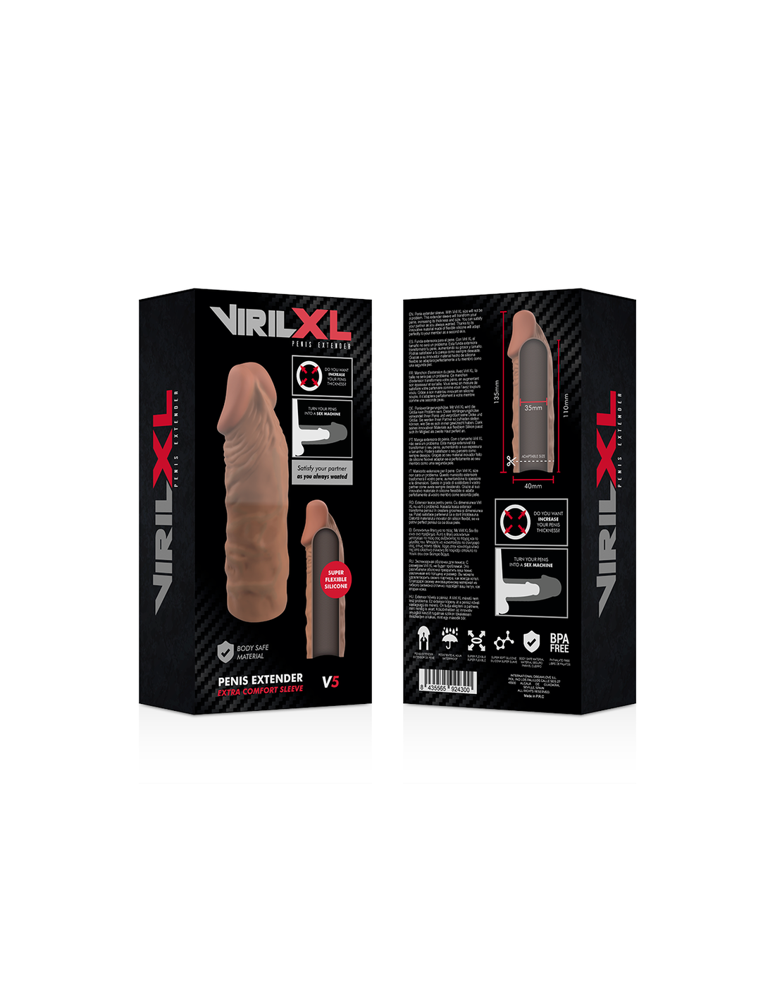 Scopri un nuovo livello di piacere e aumenta lo spessore con la custodia per pene VirilXL Extension. Questa manica morbida ed elastica è facilmente adattabile: basta tagliare la parte dove inizia il glande per ottenere la misura perfetta per te. Sentirai ogni sensazione amplificata, mentre il tuo partner apprezzerà un nuovo, avvolgente spessore.