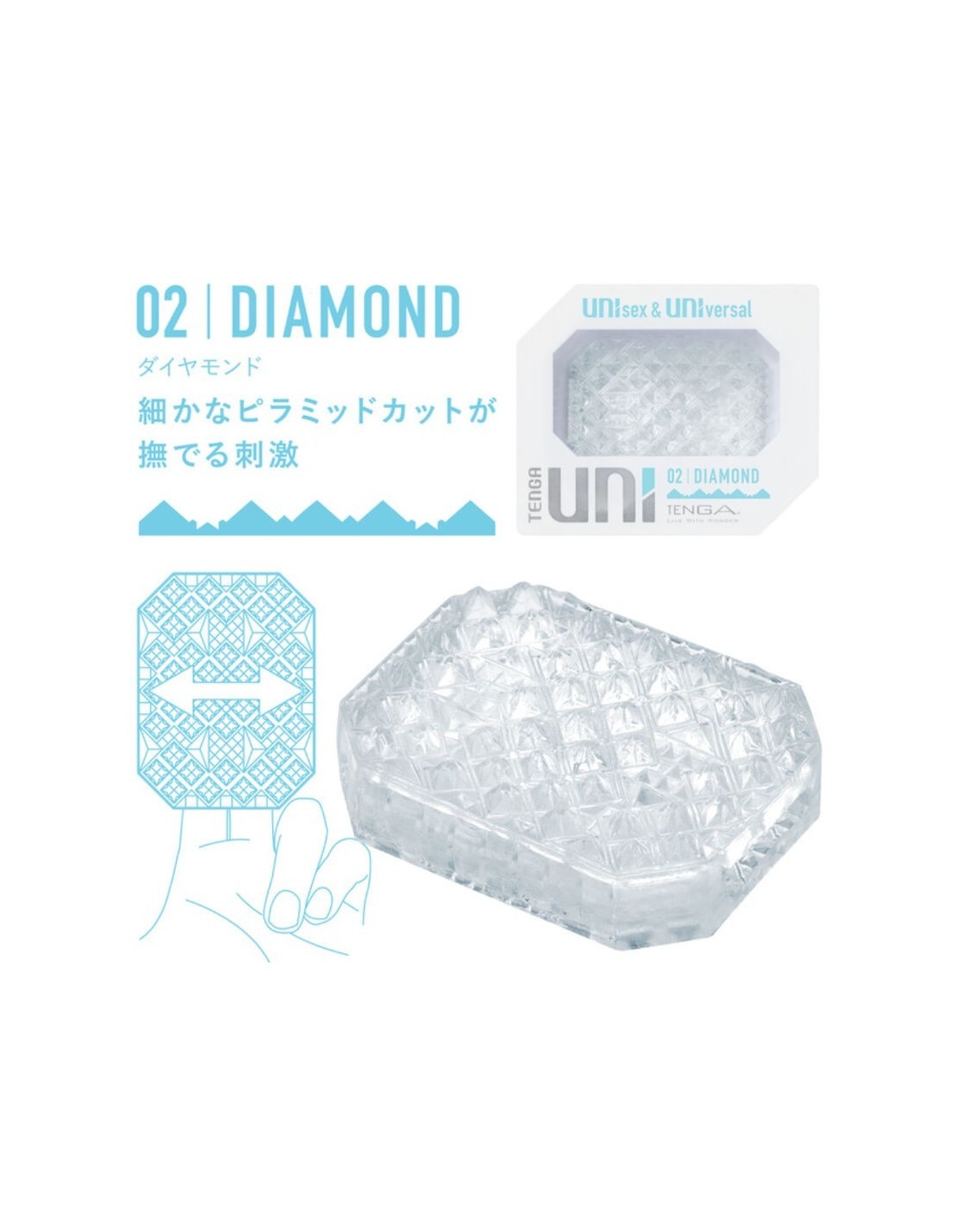 DIAMANTE: il delicato motivo a taglio piramidale offre una stimolazione piacevole e raffinata. Le piccole piramidi, distribuite in modo uniforme, regalano una carezza delicata che ti farà vivere sensazioni uniche.