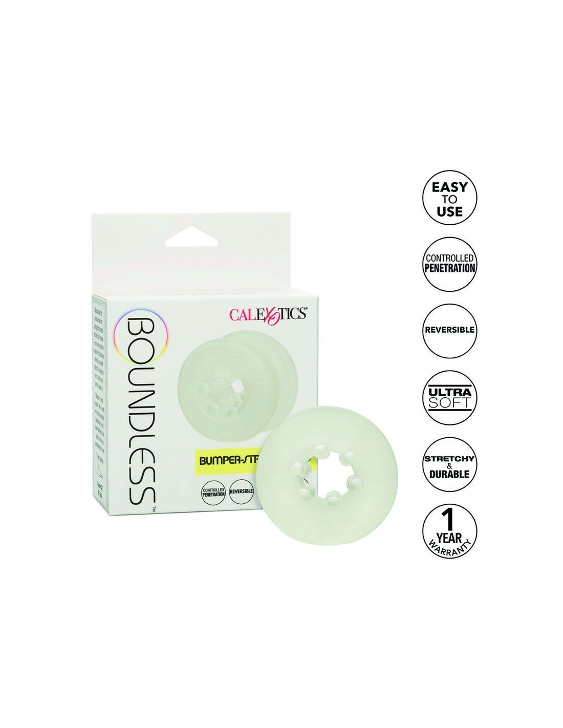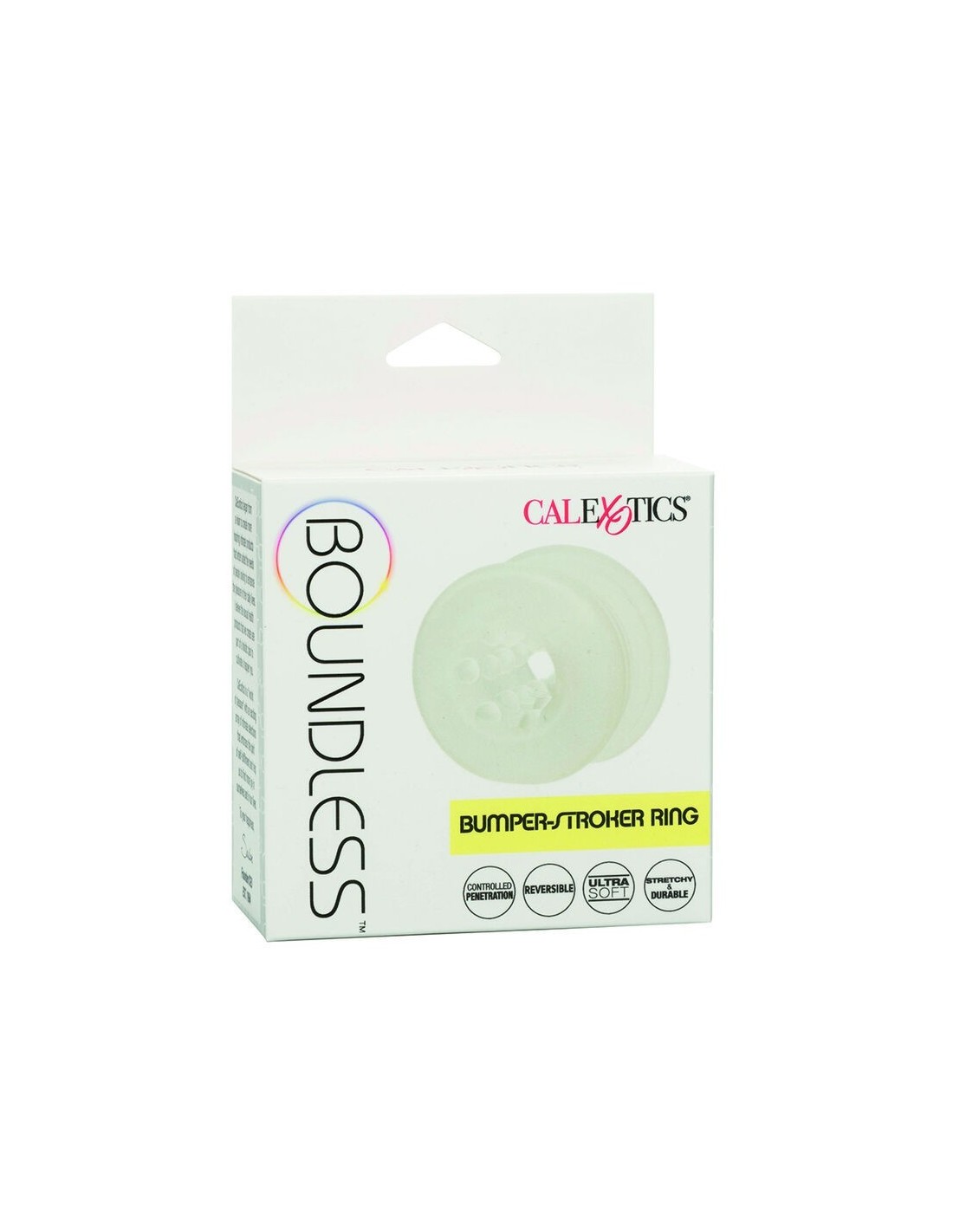 Scopri il Boundless Bumper-Stroker Ring, un accessorio versatile e innovativo per arricchire i tuoi momenti di intimità. Realizzato in materiale morbido, elastico e aderente, questo anello offre stimolazioni uniche, sia come anello di ritenzione che come stimolatore. Grazie alla sua funzione di tappa, ti permette di regolare la profondità di penetrazione per un piacere su misura. La sua struttura reversibile propone due texture diverse, regalando sensazioni variegate e coinvolgenti. Completamente sicuro per il corpo, inodore e privo di ftalati, garantisce il massimo comfort e sicurezza. Lasciati conquistare da nuove emozioni e porta il tuo piacere a livelli mai provati con il Boundless Bumper-Stroker Ring, l’alleato perfetto per momenti indimenticabili.