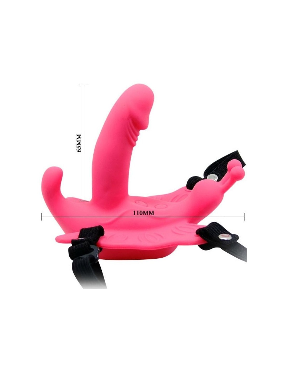 Indossate questa imbracatura dal design a farfalla e lasciatevi avvolgere da un’intensa stimolazione clitoridea, grazie anche al piccolo fallo vibrante integrato. Facile da usare: basta accenderla, scegliere una delle dieci modalità di vibrazione e lasciarvi trasportare dal ritmo che vi farà sentire leggere come ali in volo.
