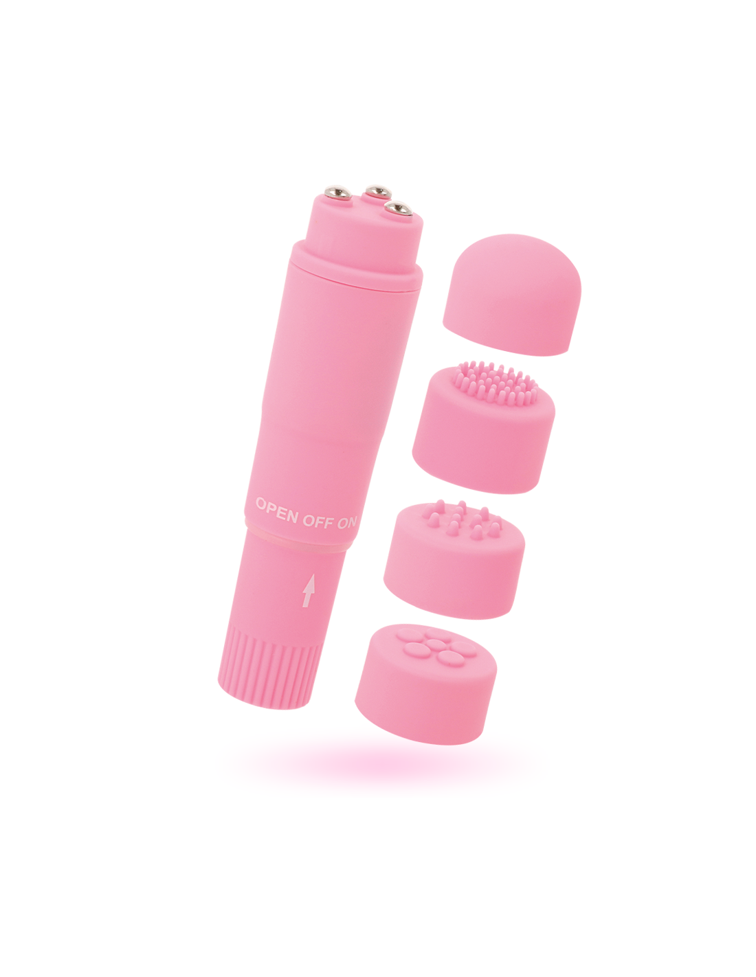 Questo stimolatore portatile mantiene tutte le promesse: è fornito con 4 testine diverse, facilmente sostituibili per variare le sensazioni. A volte basta una sola velocità per raggiungere il massimo relax. Realizzato in ABS con rivestimento in poliuretano, è pensato per durare nel tempo.