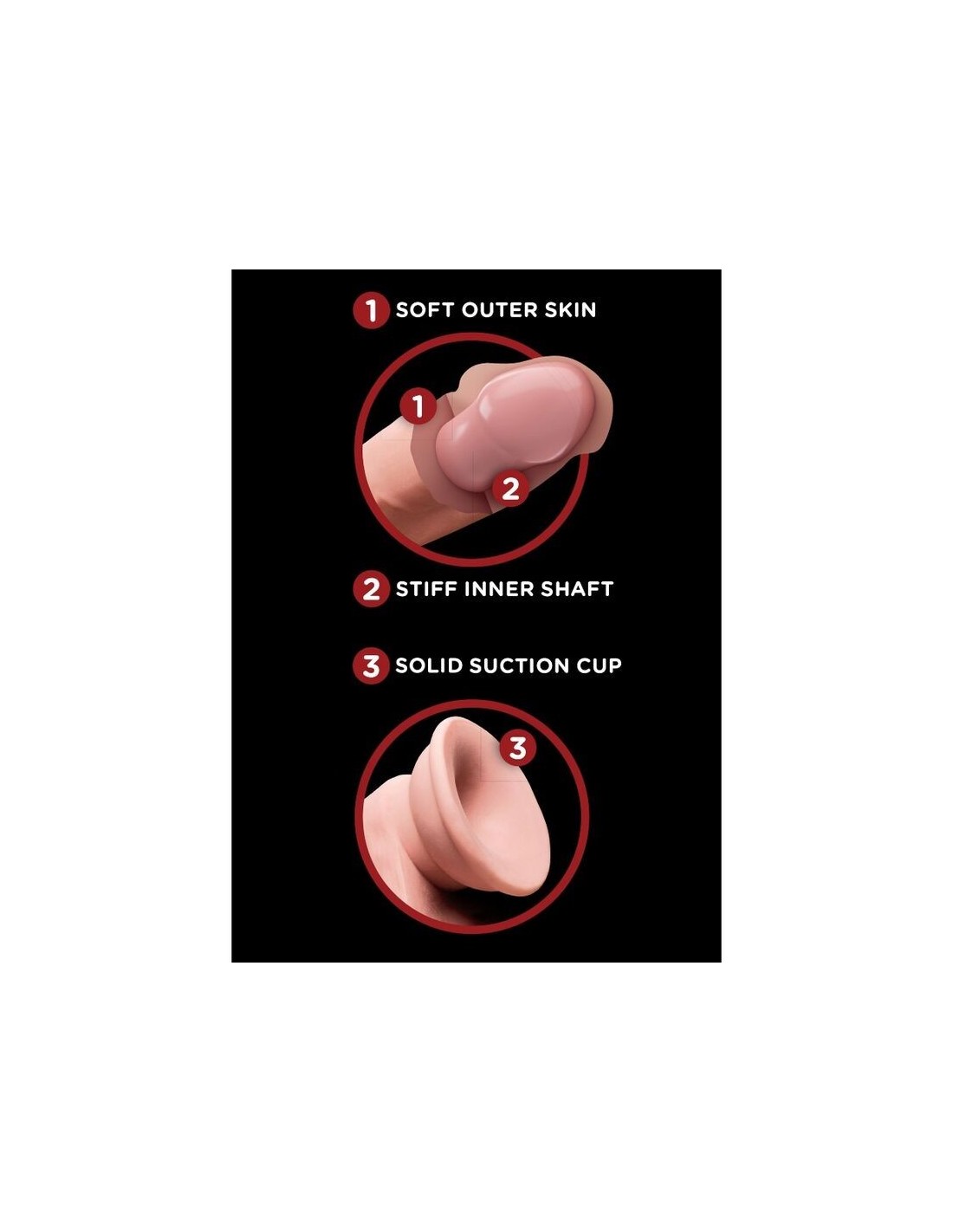- Compatibile con imbracature Strap-On: la base ampia e la ventosa rendono questo dildo perfettamente compatibile con le imbracature King Cock Plus a tripla densità.
