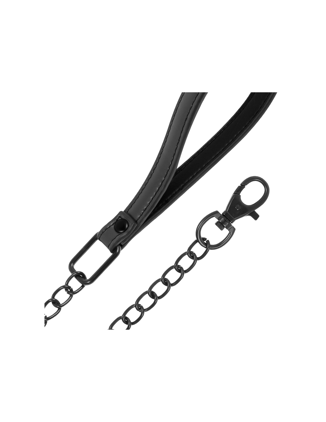 Il collare, realizzato in pelle vegana e dotato di una catena metallica resistente e senza nichel, è perfetto per chi ha già esperienza nel mondo BDSM.