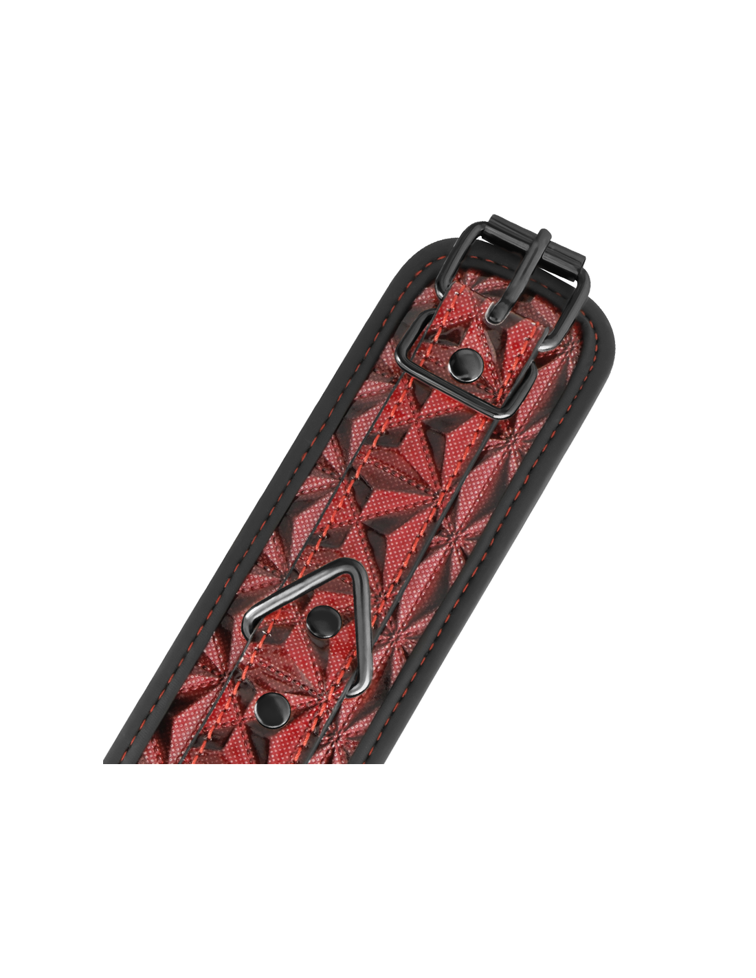 Questi polsini uniscono un’estetica elegante a una funzionalità impeccabile. Realizzati con doppio strato e rifiniti da una fibbia in metallo, impediranno al tuo sottomesso di scappare. L’interno imbottito garantisce comfort anche durante un utilizzo prolungato o sotto tensione.