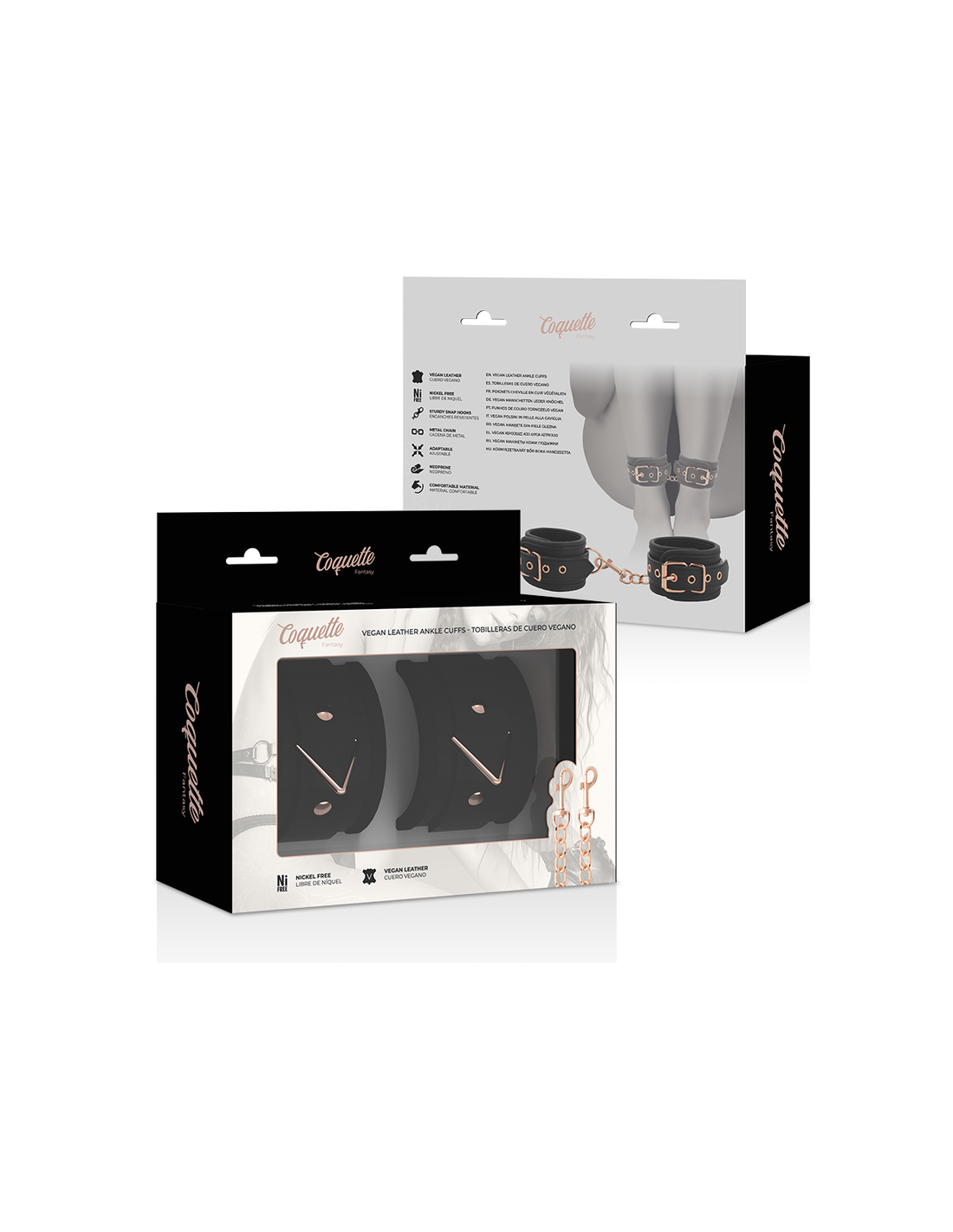 COQUETTE CHIC DESIRE FANTASY presenta le prime manette in pelle vegana con metallo privo di nichel! Blocca il tuo amante con queste manette sexy, funzionali e confortevoli, un accessorio intramontabile per i tuoi giochi bondage.