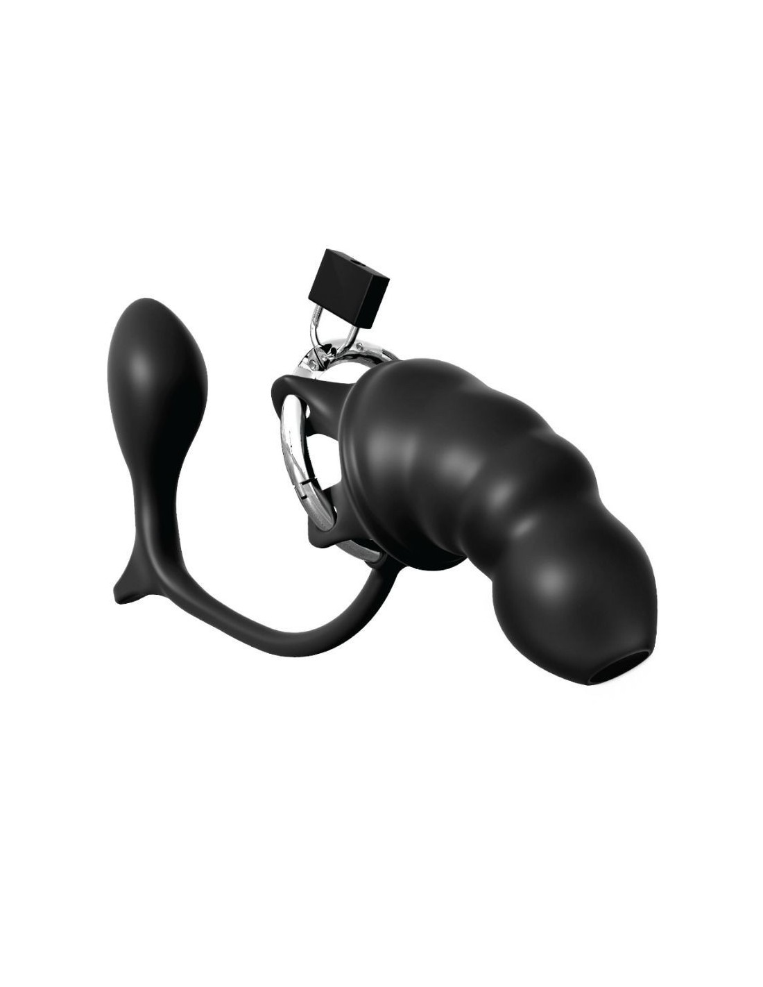 Completa di serratura e chiavi, questa combinazione plug-gabbia è perfetta per gli appassionati del mondo fetish.
