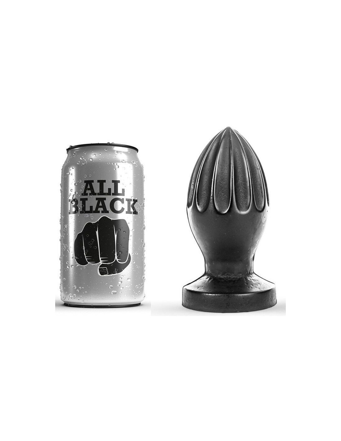 Il Buttplug All Black presenta scanalature profonde che si estendono dalla sommità fino al centro, con una superficie liscia al tatto.
