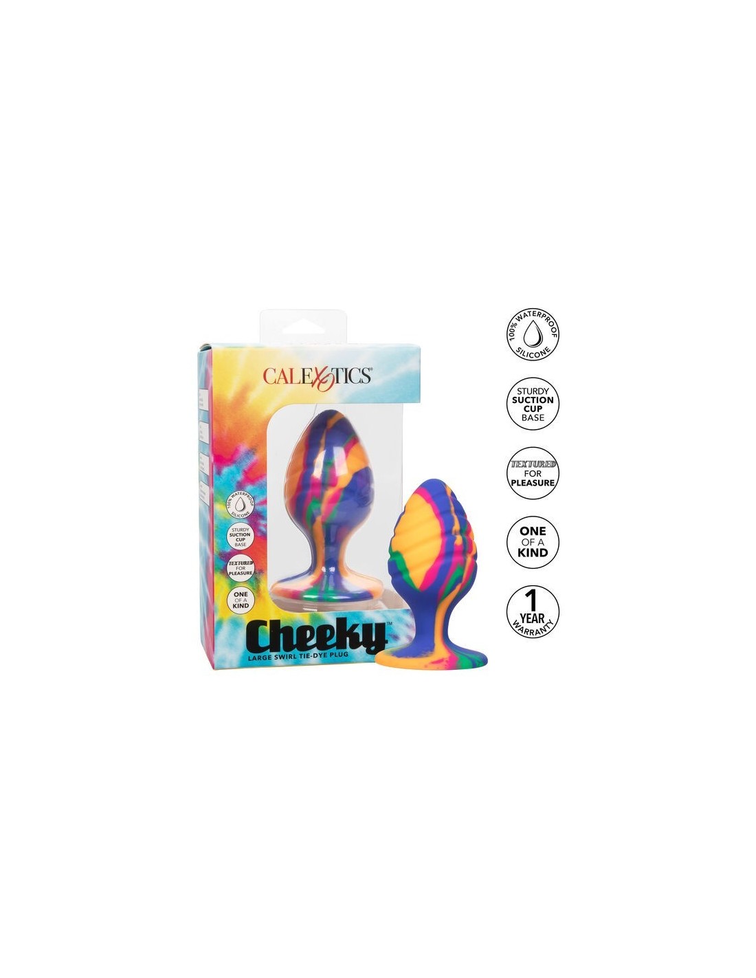 Scatena il tuo lato più audace e lasciati conquistare dal divertimento con il Cheeky Medium Tie Dye Plug. Questo accessorio anale spiritoso e colorato si distingue per il suo design tie-dye vivace, la sonda affusolata con punta arrotondata e la versatile base a ventosa, pensata per rendere il gioco ancora più stimolante.