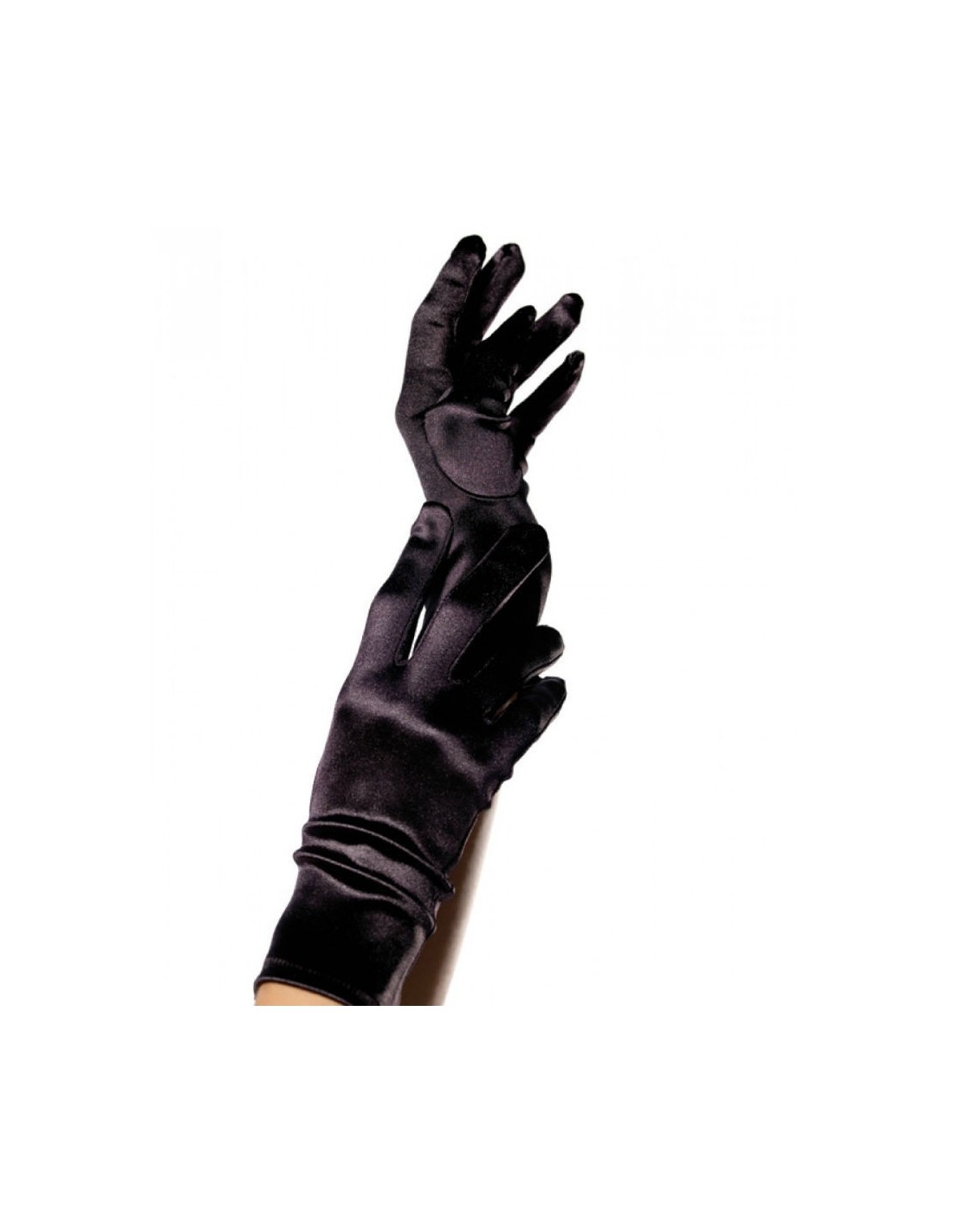 Guanti corti, elasticizzati e perfettamente aderenti. Di colore nero con un raffinato effetto satinato che dona lucentezza e un tocco di eleganza, ideali per feste, cerimonie, eventi speciali o matrimoni.