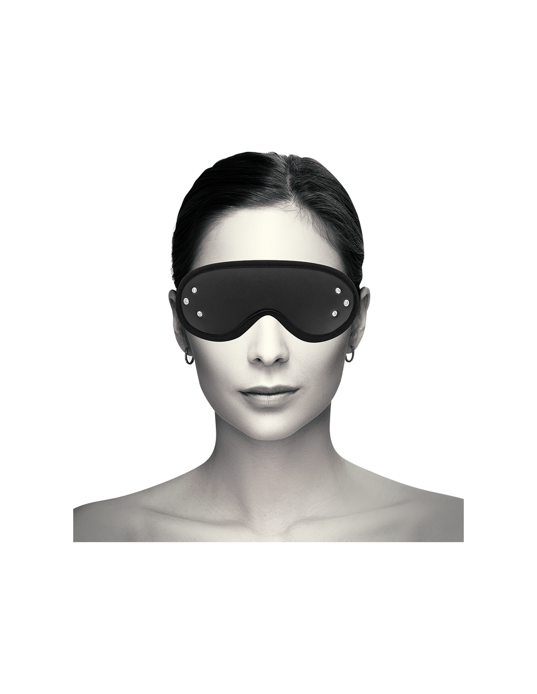 La maschera si fissa comodamente grazie a una fascia elastica, garantendo una vestibilità perfetta. È realizzata in pelle vegana di alta qualità.