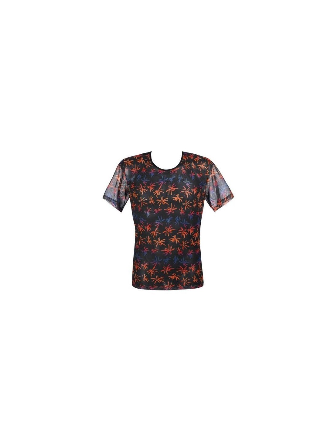Morbido tulle nero arricchito da una stampa colorata con palme natalizie.