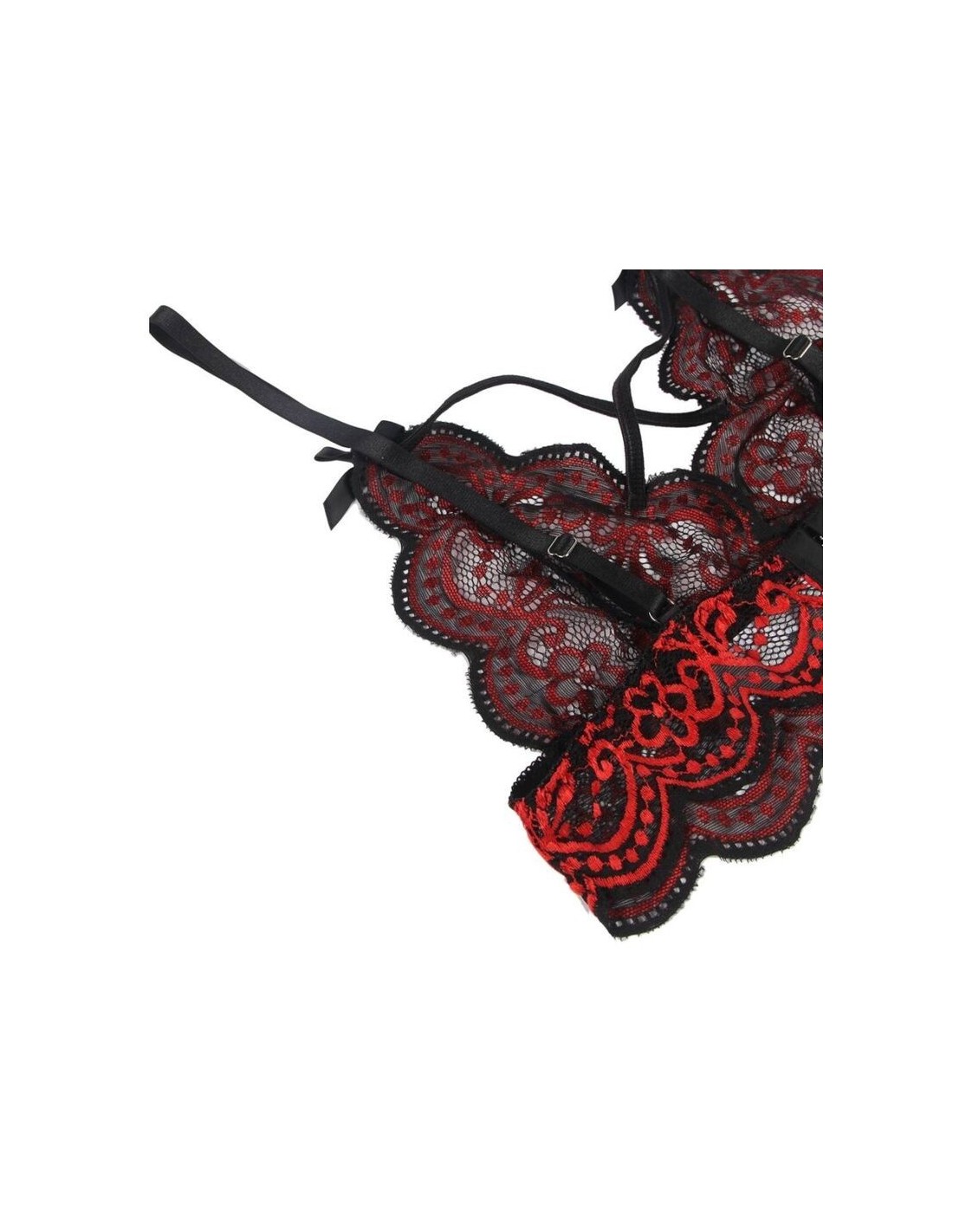- Splendida combinazione di ricami e pizzi nei toni del rosso e nero