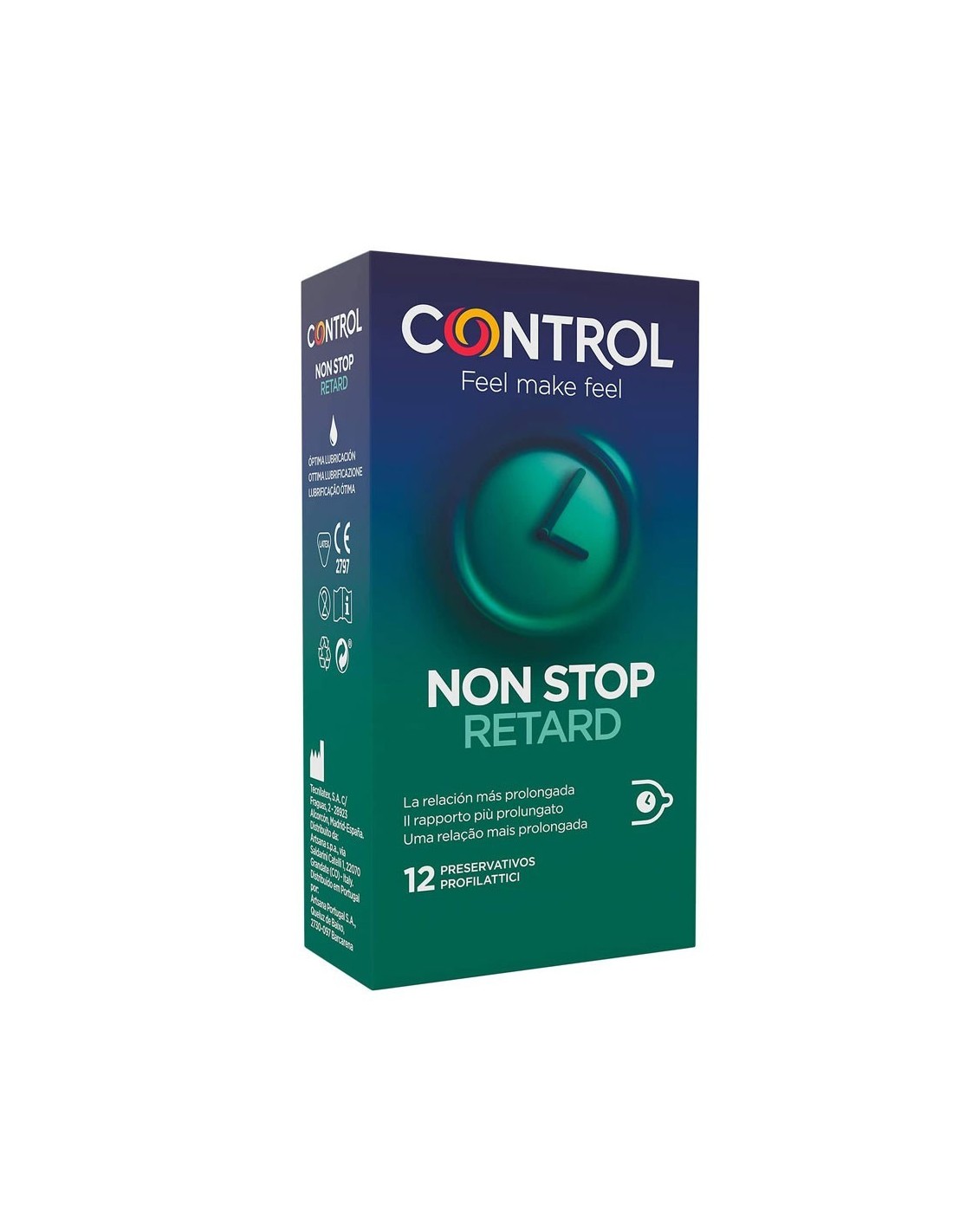Control Non stop è un profilattico in lattice di gomma naturale della massima qualità, sottile, liscio, anatomico, a lati non paralleli, trasparente, lubrificato e con serbatoio. Con larghezza nominale di 54 mm, ultra confort!