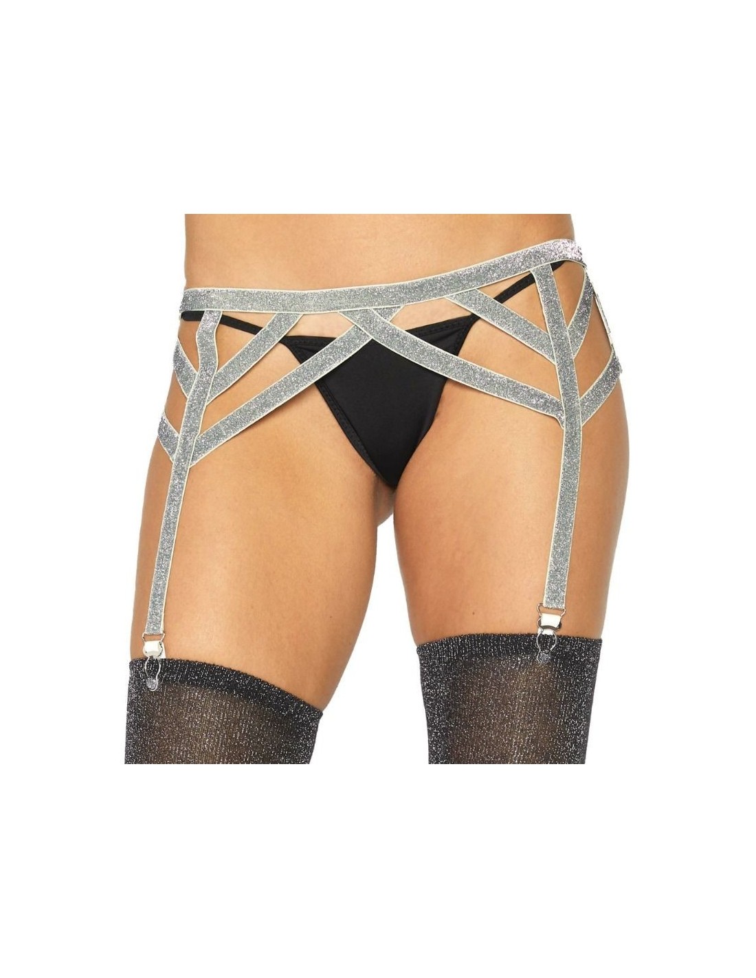 Scopri il fascino irresistibile del reggicalze elasticizzato in lurex scintillante. Vivi tutta la seduzione con il tocco unico della tua marca di lingerie preferita: Leg Avenue.