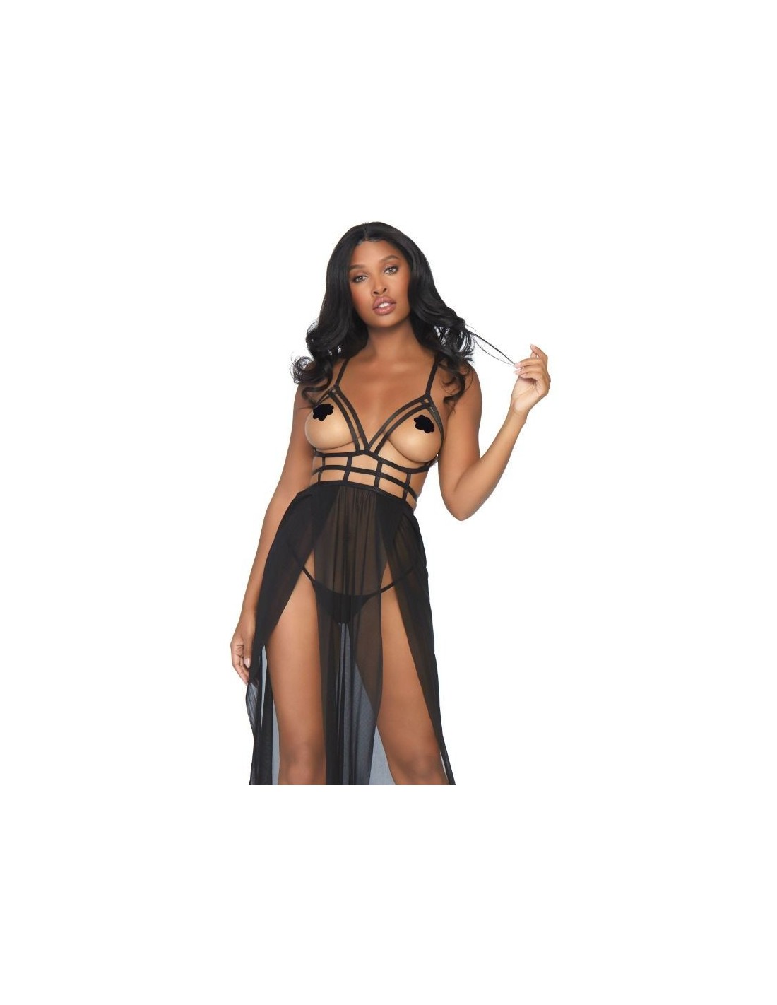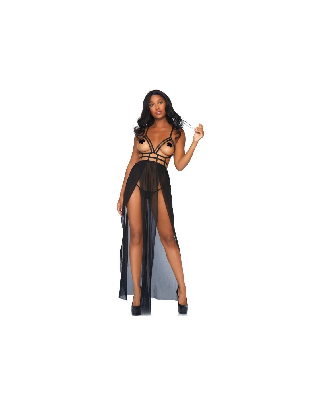 Scopri l'eleganza irresistibile di questo abito maxi firmato Leg Avenue, con corpetto aperto, cinturino a gabbia e perizoma coordinato. Un capo pensato per esaltare la tua femminilità con un tocco di seduzione e raffinatezza senza pari.