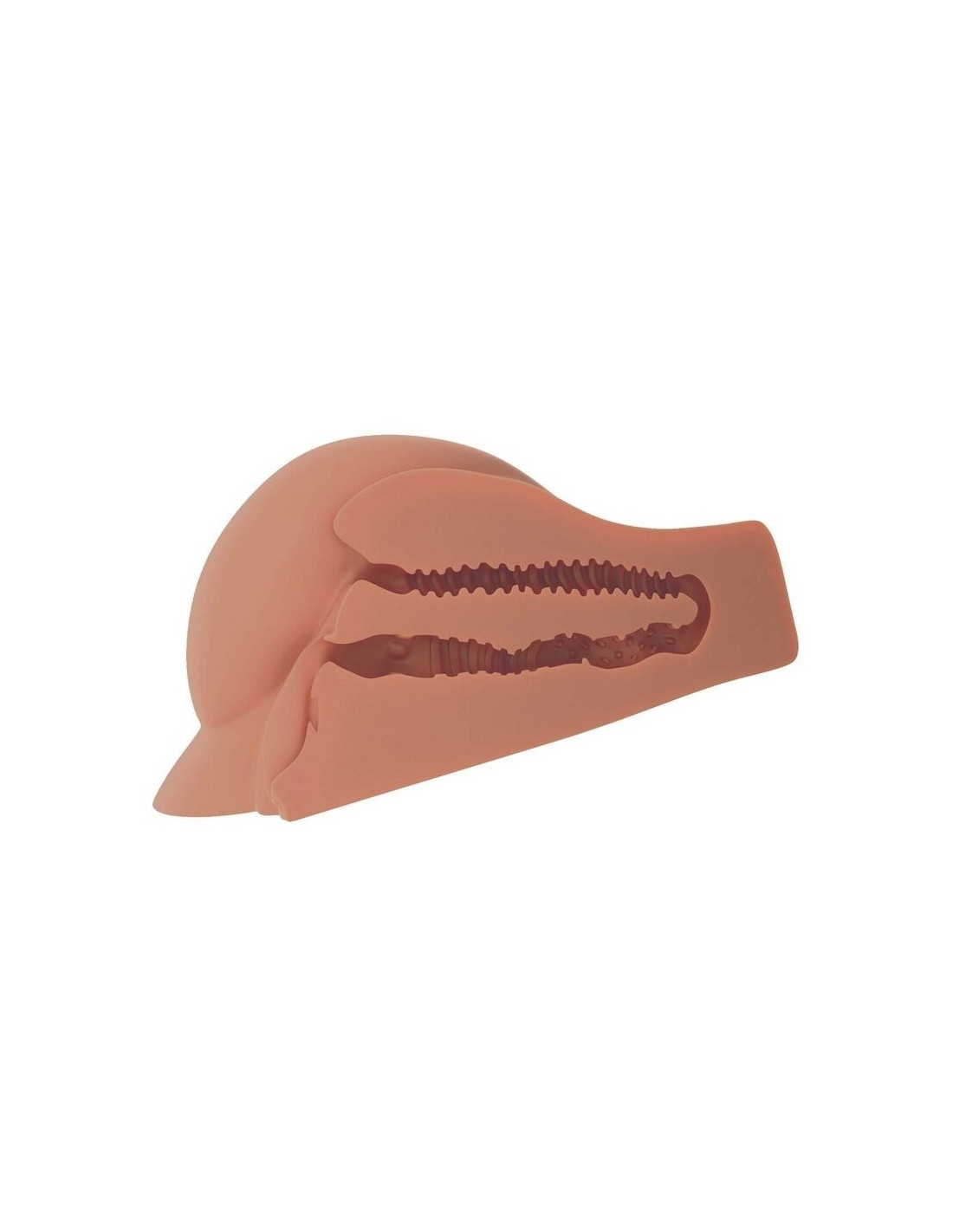 Le sue grandi e rotonde natiche sono perfette per essere strette e massaggiate, mentre le due aperture, entrambe strette e stimolanti, sono arricchite da protuberanze studiate per coccolare ogni centimetro della tua asta. Ogni foro ha un disegno interno diverso, per regalarti la sensazione realistica e variegata che hai sempre desiderato.