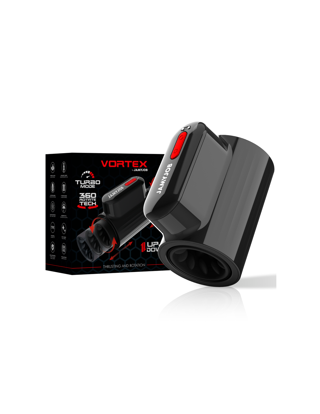 Il masturbatore maschile JAMYJOB VORTEX con movimento su e giù è un dispositivo di piacere ad alte prestazioni, progettato per portarti a livelli di soddisfazione mai provati prima. Dal design elegante in nero con dettagli rosso intenso, questo prodotto vanta caratteristiche davvero eccezionali.