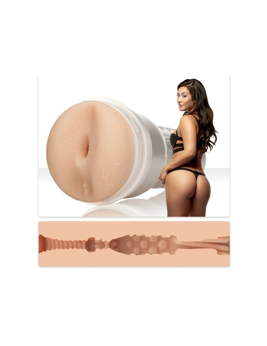 All’interno, la manica è realizzata in materiale ultra realistico, simile alla pelle vera, che si adatta alla temperatura del corpo per un realismo senza pari. Il design dell’ano è curato nei minimi dettagli, una replica fedele dell’ano di Eva Lovia, rendendo questo prodotto un pezzo unico e davvero esclusivo.