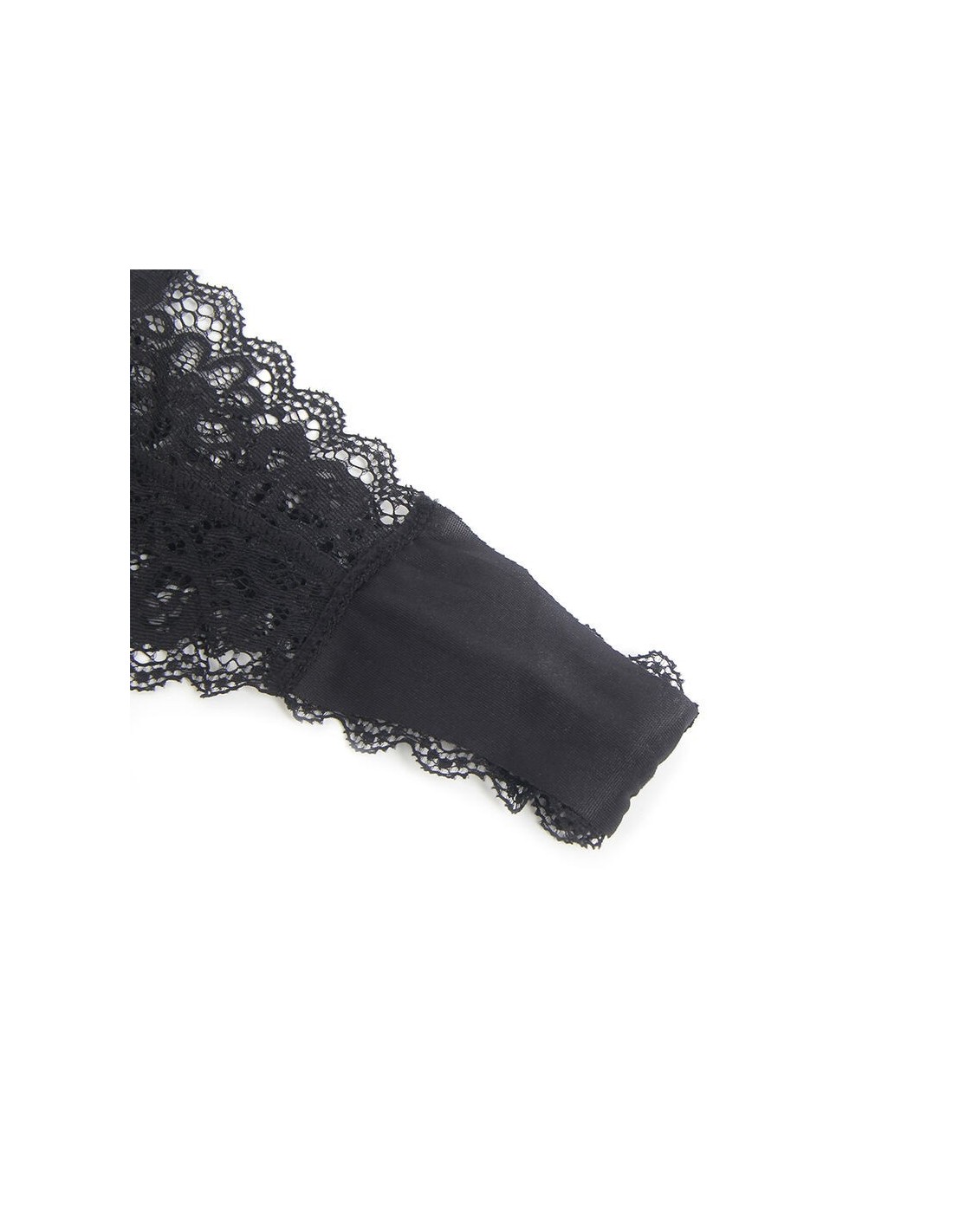 Il nero intenso, abbinato al contrasto tra il pizzo e la finitura in pelle PU, rende questo set versatile e perfetto per esprimere il tuo lato più deciso e raffinato.