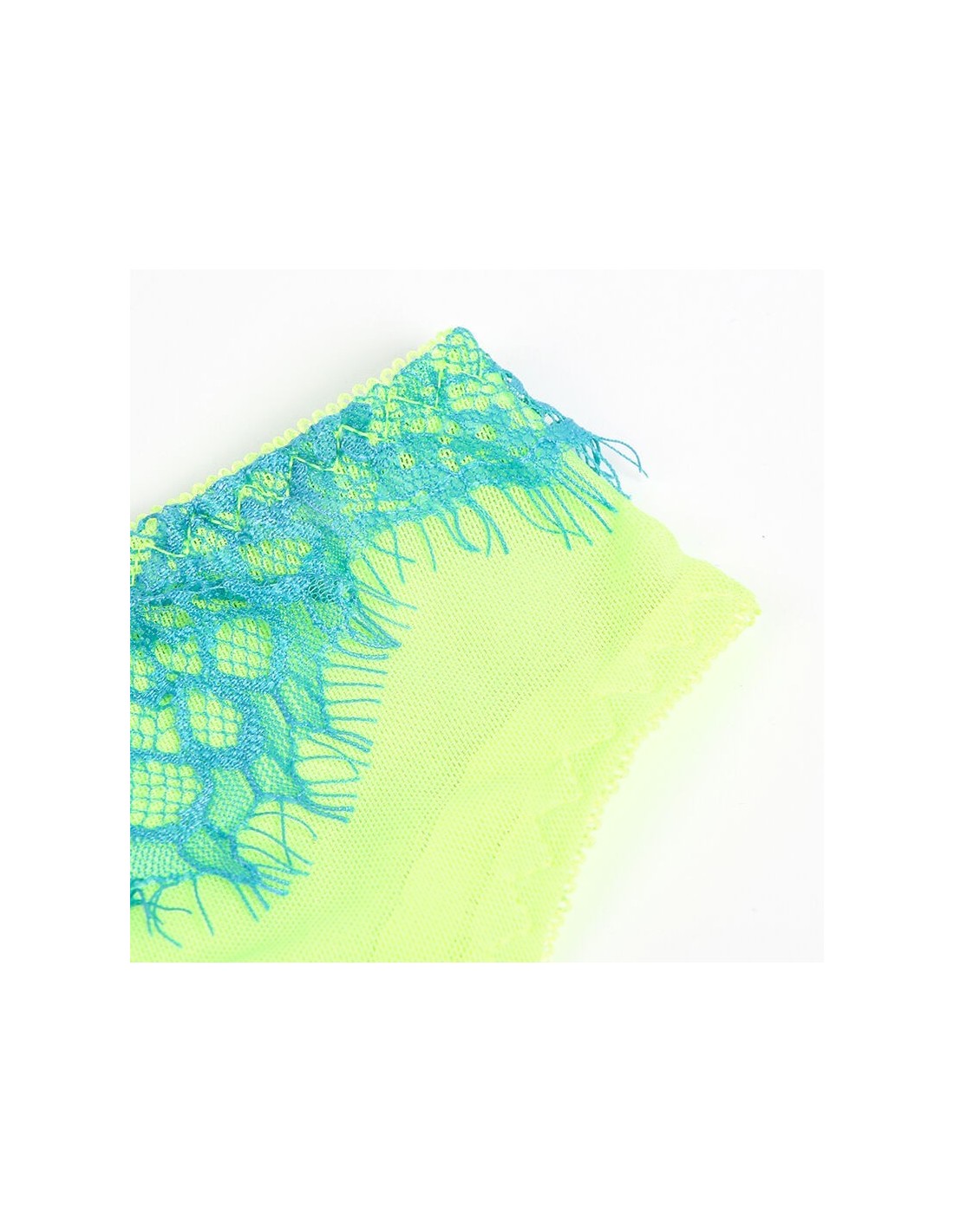 Il pizzo a ciglia, noto per il suo aspetto sofisticato e romantico, conferisce al set un’allure femminile e leggera. Il suo raffinato colore verde, fresco e insolito, aggiunge un tocco di modernità, rendendolo ideale per distinguerti in occasioni speciali o per vivere momenti intimi con stile.
