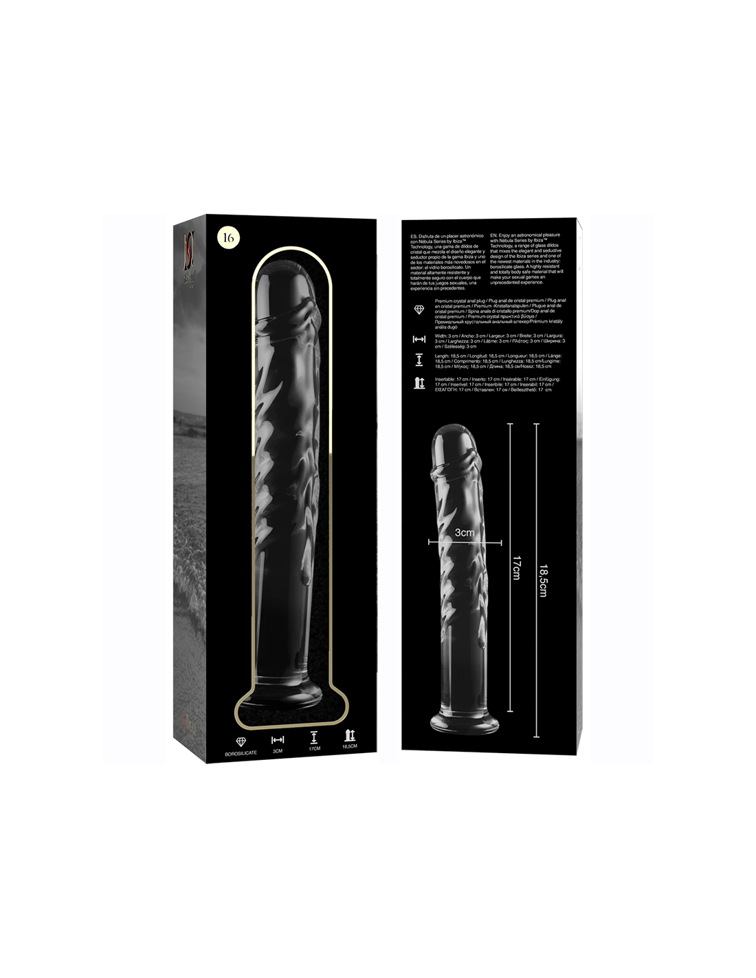 NEBULA SERIES BY IBIZA - MODELLO 16 DILDO IN VETRO BOROSILICATO TRASPARENTE 18.5 CM -O- 3 CM
