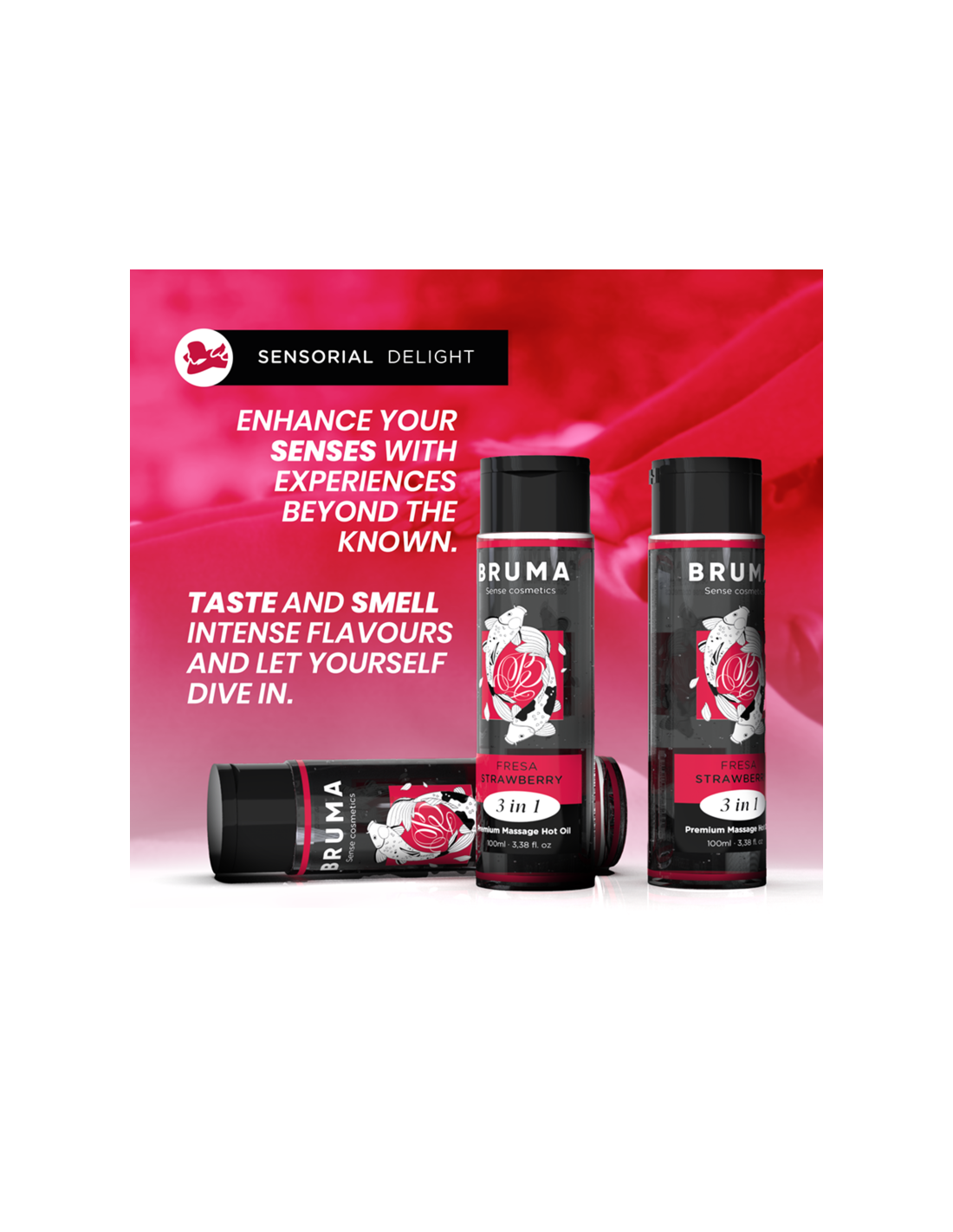 L'olio da massaggio Premium al gusto di fragola con effetto termico firmato BRUMA è un vero tesoro nel mondo del benessere e dell'intimità. Presentato in un elegante flacone da 100 ml, questo prodotto unico è studiato per regalarti un'esperienza sensoriale intensa, combinando un massaggio rilassante a una piacevole sensazione di calore che lo rende ancora più speciale. Ecco tutti i suoi punti di forza: