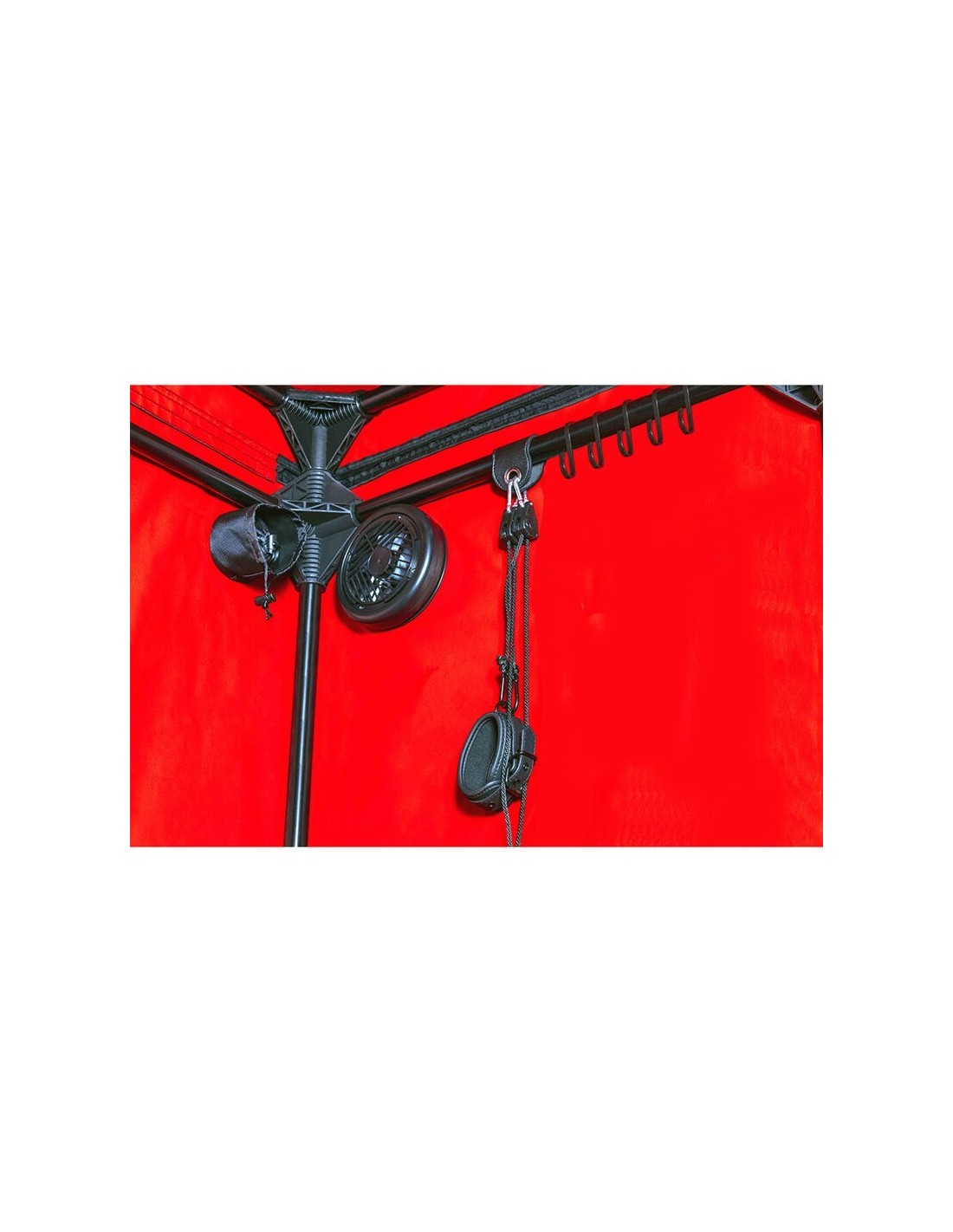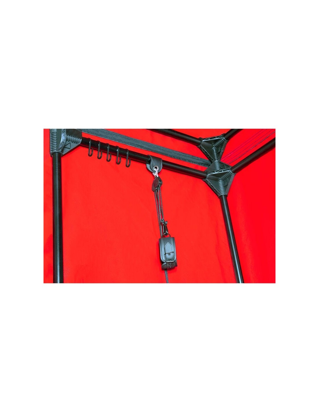 Le manette e le catene incluse permettono un'immobilizzazione completa, dando il via a sessioni intense di potere e piacere. Il materasso interno assicura il comfort necessario per prolungare l’esperienza finché la fantasia lo desidera. E al termine, basta riporre tutto nella pratica borsa da viaggio per portare la scena ovunque il desiderio ti chiami.
