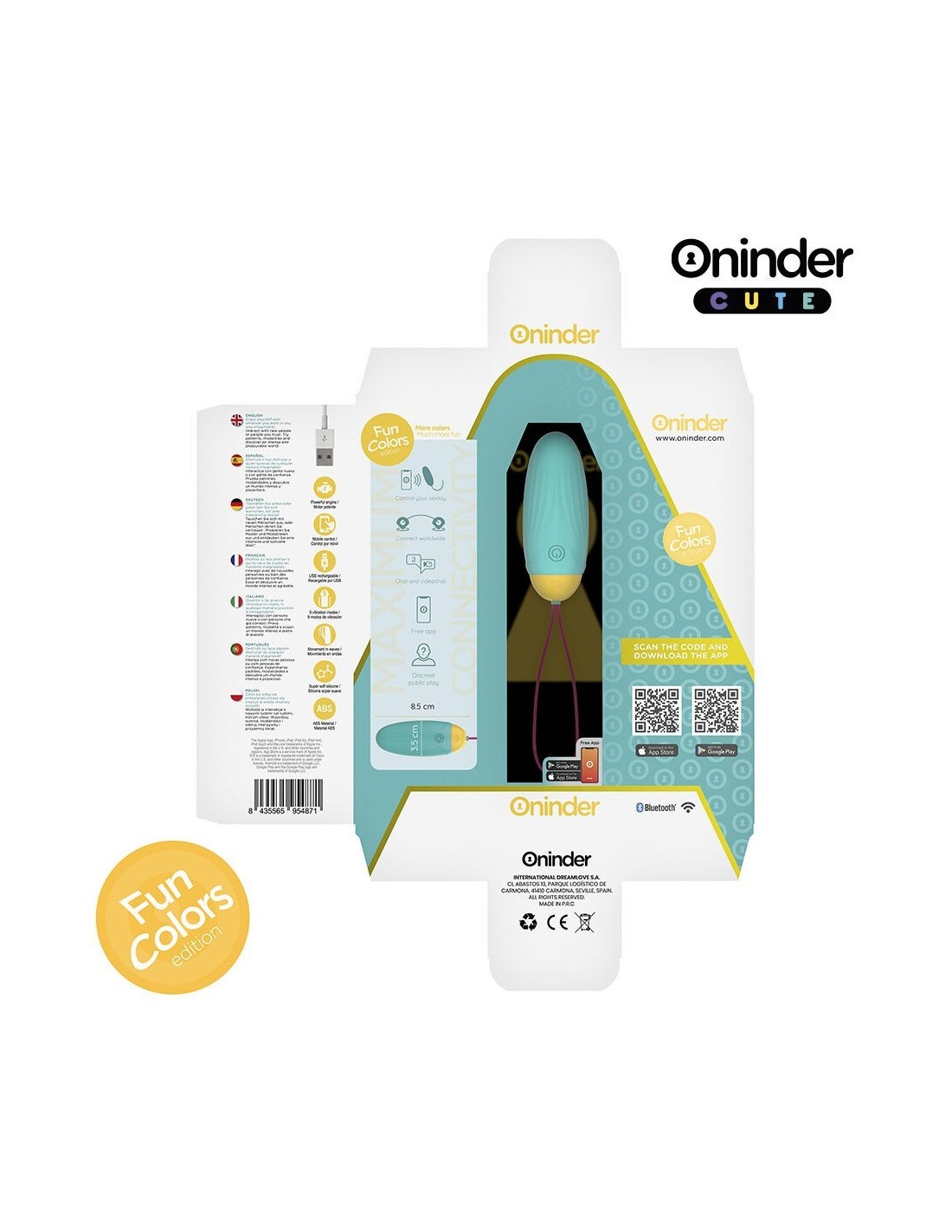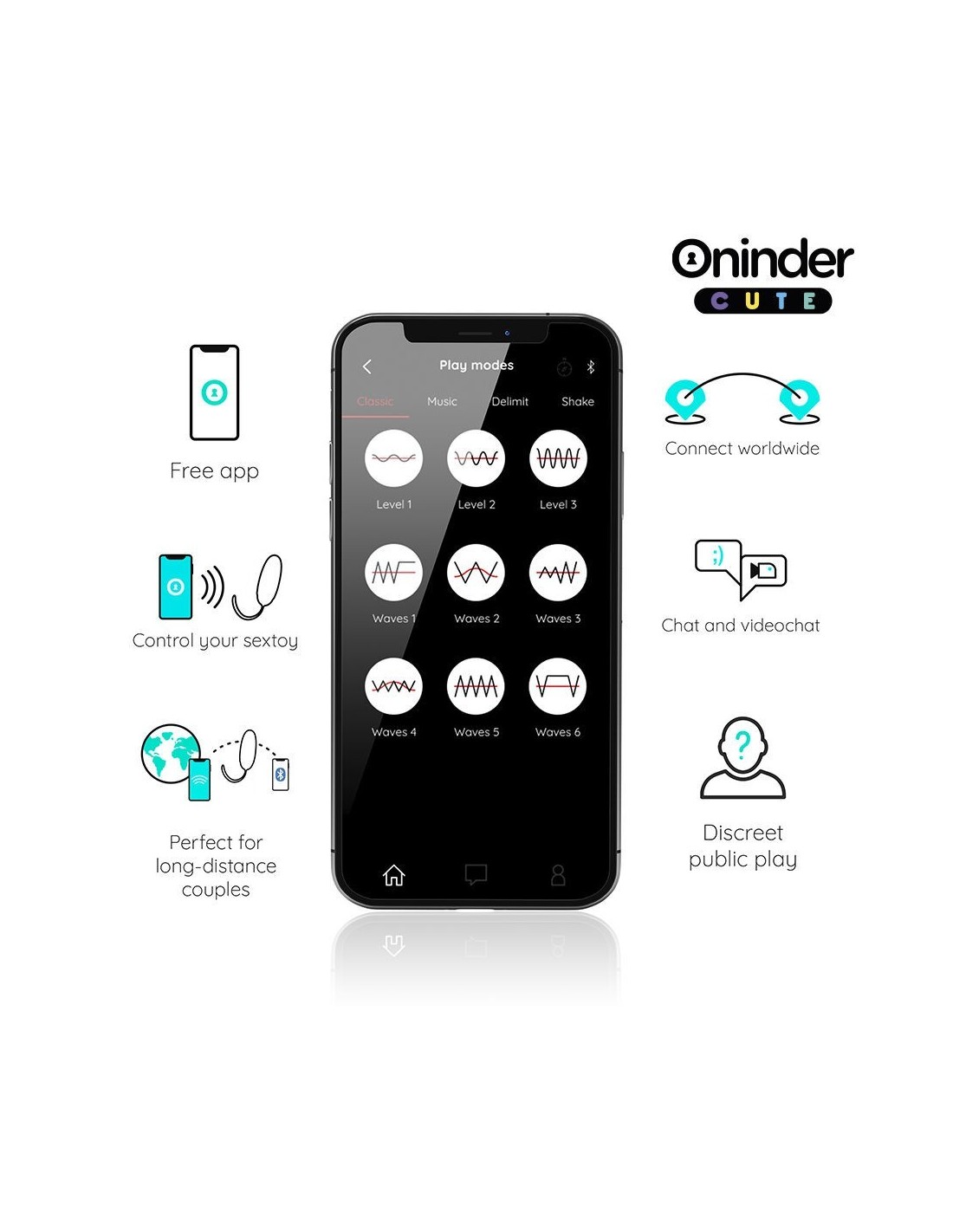 Con questo vibratore, non solo puoi scegliere tra intensità preimpostate e combinazioni di vibrazioni, ma puoi anche condividere un controllo innovativo basato su app. Basta scaricare l39app gratuita ONINDER™ sul tuo dispositivo Android o iOS e collegare il tuo smartphone o tablet.