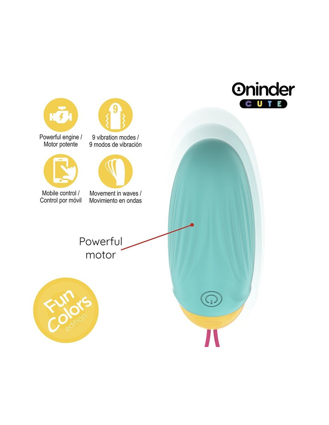 Scopri il nuovo uovo vibrante ONINDER CUTE , pensato per chi cerca discrezione, potenza e stimolazione innovativa. Grazie alla sua tecnologia avanzata, questo uovo vibrante non solo ha 9 modalità di vibrazione, ma incorpora anche un movimento ondulatorio, che offre una sensazione unica e avvolgente. Disponibile in tre vivaci combinazioni di colori: