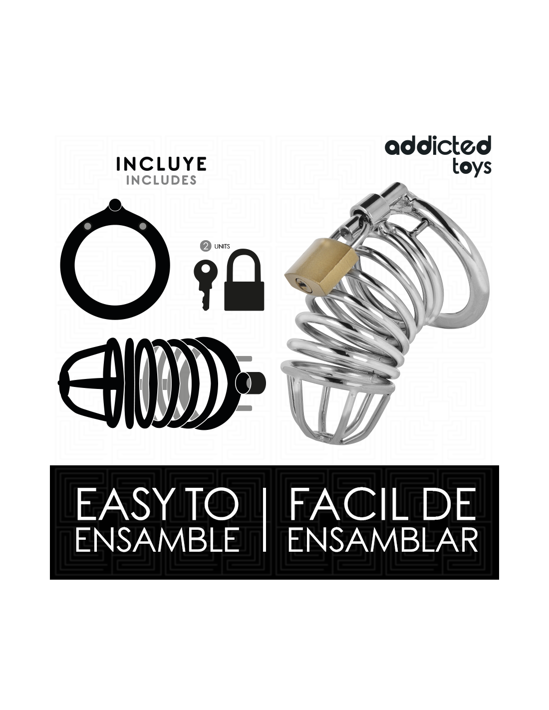 Prova la massima restrizione con questa gabbia di castità in metallo di Addicted Toys, ideale per chi cerca un39esperienza di controllo ferma e sicura. Questa gabbia offre un design durevole e robusto, con una vestibilità comoda e sicura per chi preferisce materiali metallici di alta qualità.