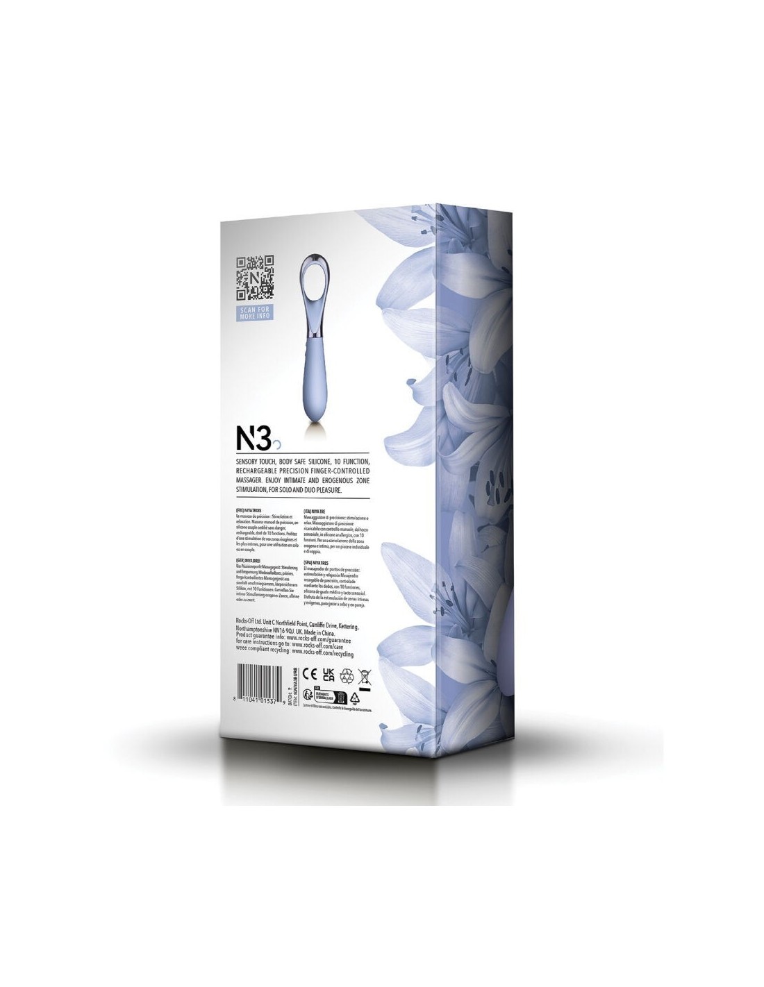 El Niya N3 di Rocks-Off è un massaggiatore elegante ed ergonomico, progettato per offrire una stimolazione precisa e diretta nelle zone più sensibili del corpo. Il suo design innovativo tipo anello consente un controllo totale del dedo, garantendo comodità ed esattezza in ogni movimento.