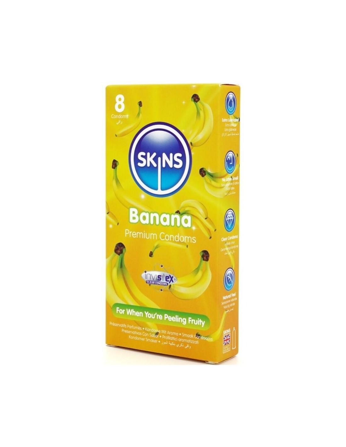 Vi presentiamo la nostra nuova confezione da 8 preservativi al gusto di banana, dal design elegante e pronto all39uso. Godetevi un39esperienza divertente e di alta qualità con i preservativi Skins al gusto di banana. Progettati per unire divertimento e funzionalità, questi preservativi confezionati singolarmente sono ideali per i negozi che desiderano offrire ai propri clienti un39opzione aromatizzata di alta qualità che si distingua.