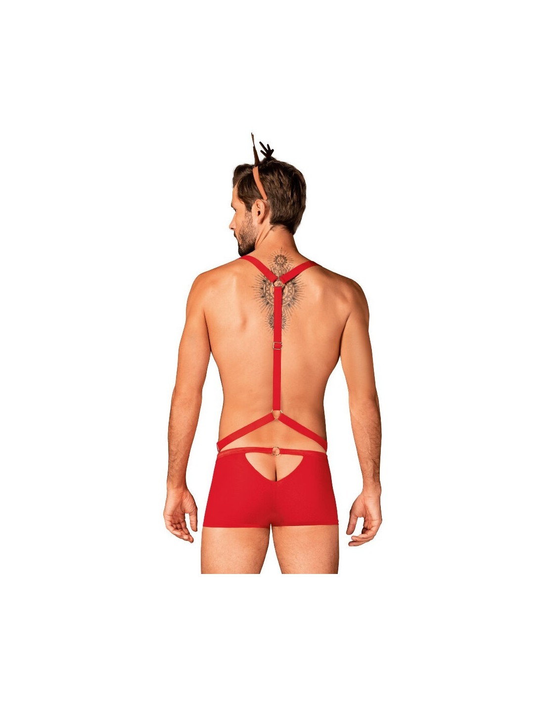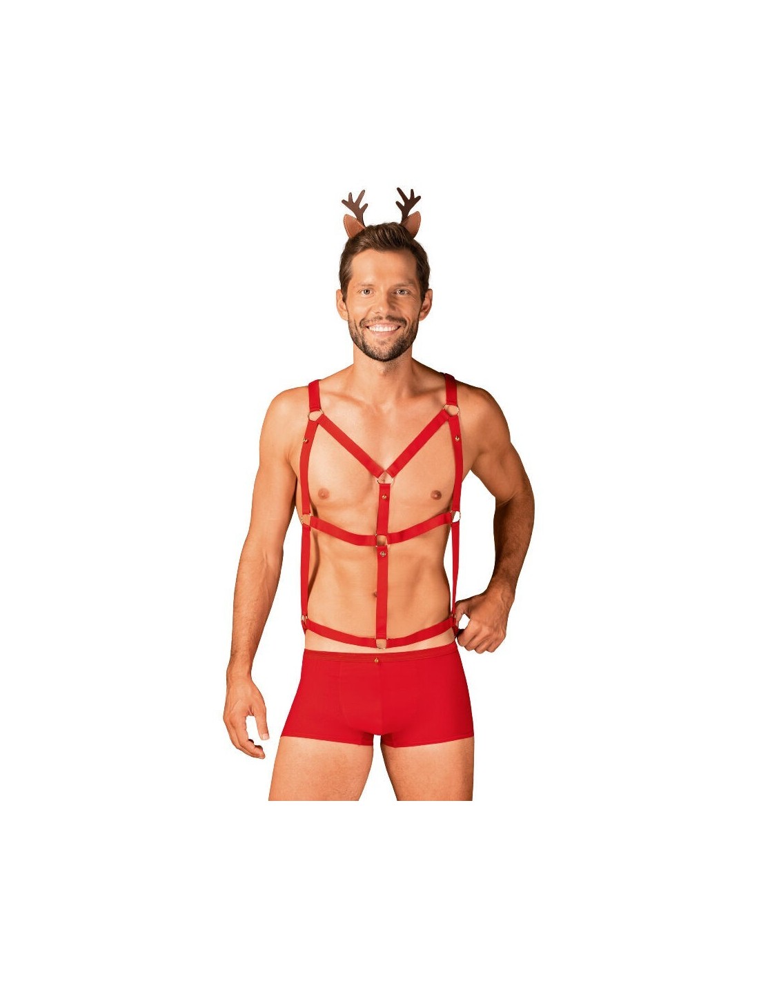 Il giocoso signor Renna ha voglia di divertirsi! L39imbracatura rosso piccante e gli slip allettanti sono una coppia molto sexy e sensuale, pronta per i guai in camera da letto. Il cerchietto con orecchie da renna è un elemento estremamente affascinante che completa perfettamente l39outfit.