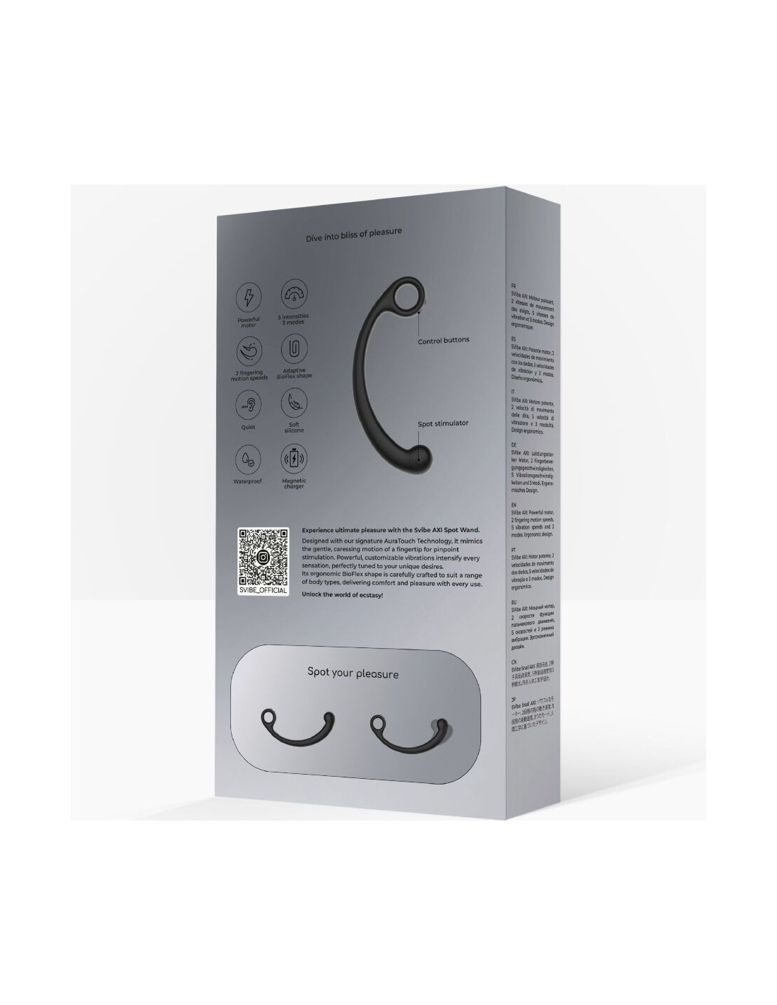 Scopri il massimo piacere nei punti P, C e G con lo stimolatore SVibe AXI , progettato per offrire un39esperienza intensa e precisa grazie all39innovativa tecnologia AuraTouch, che imita il delicato movimento di un dito che accarezza.