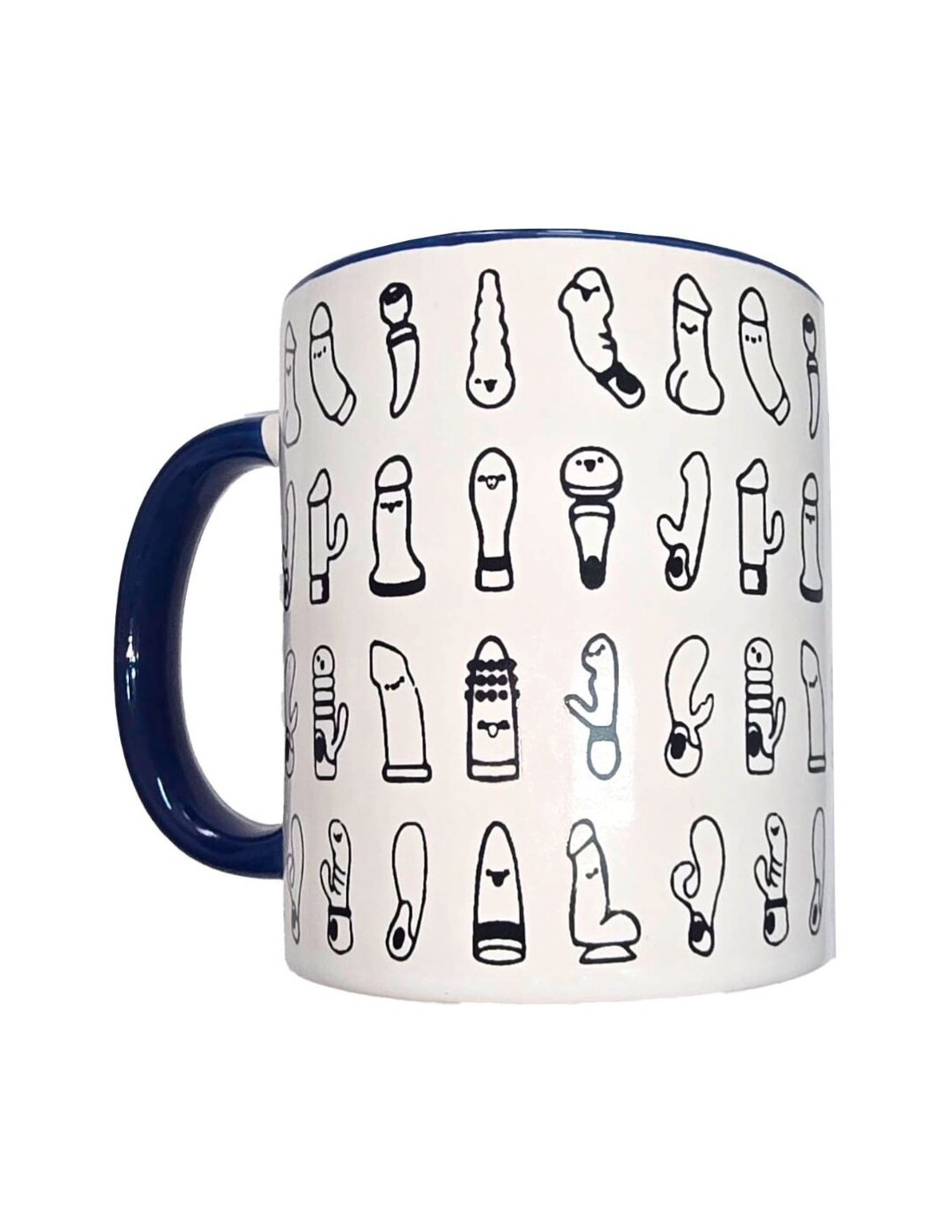 Realizzata in ceramica di alta qualità, questa tazza presenta una finitura bianca lucida all39esterno, decorata con divertenti disegni erotici ispirati ai vibratori. Il manico e l39interno blu intenso aggiungono un tocco elegante e contrastante, ideale per chi ama i dettagli con personalità.