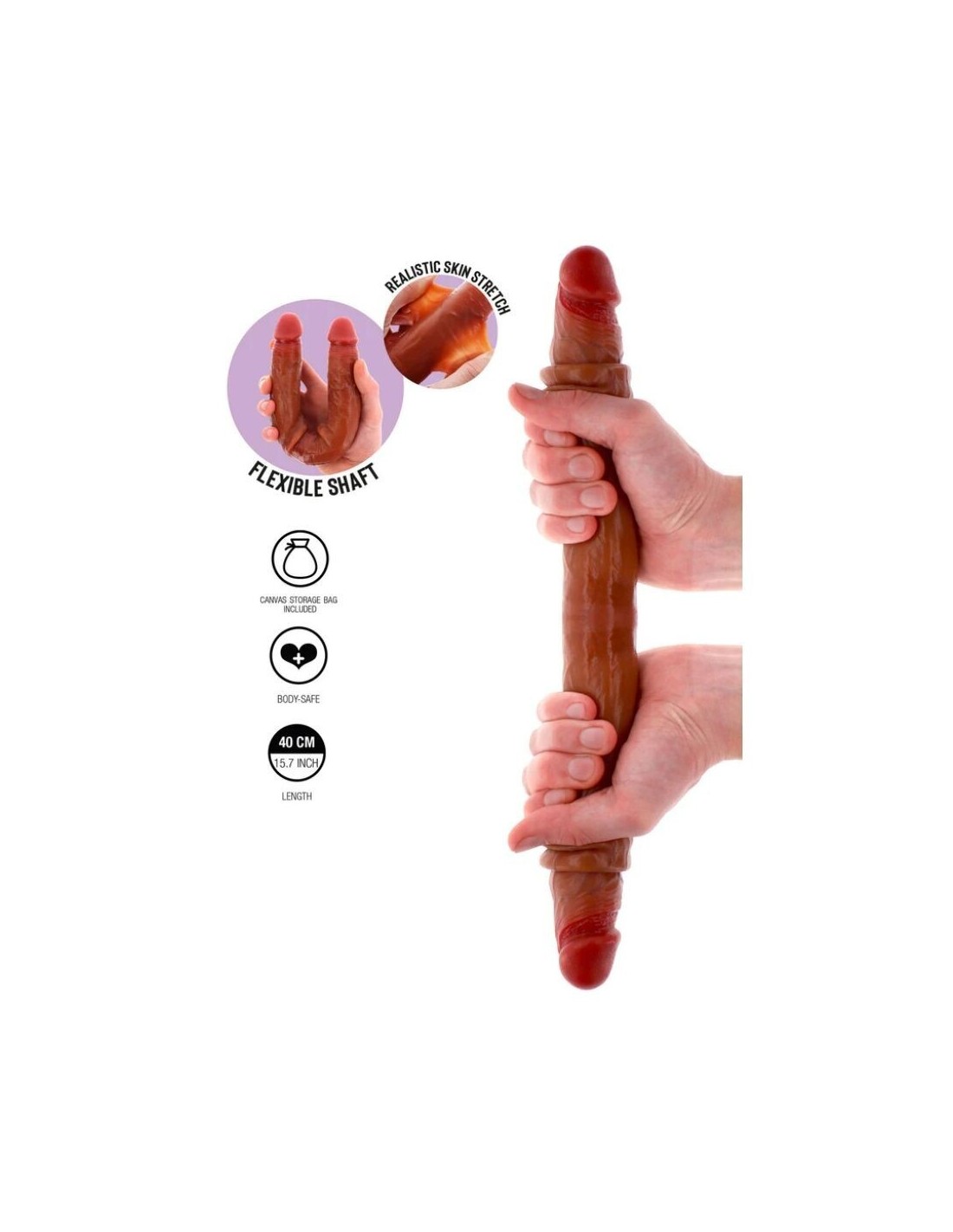 Vivi un realismo senza pari con la collezione Get Real Skin di ToyJoy. Questo dildo in silicone a doppia estremità con prepuzio è dotato di un prepuzio mobile che offre una sensazione eccezionalmente realistica. Grazie all39innovativa tecnologia a doppia densità, la morbida pelle esterna scivola dolcemente su un nucleo interno più solido, offrendo una sensazione naturale. Realizzato in silicone liquido di alta qualità, questo dildo doppio da 40 cm offre un39elasticità cutanea realistica e un prepuzio mobile, rendendolo un39alternativa eccezionale a un pene reale. Sicuro per il corpo e progettato per un piacere versatile, è perfetto per il gioco da soli o per esperienze di coppia. Include una pratica custodia in tela per una conservazione discreta. Preparati alla realtà con questo dildo doppio in silicone da 40 cm con prepuzio!