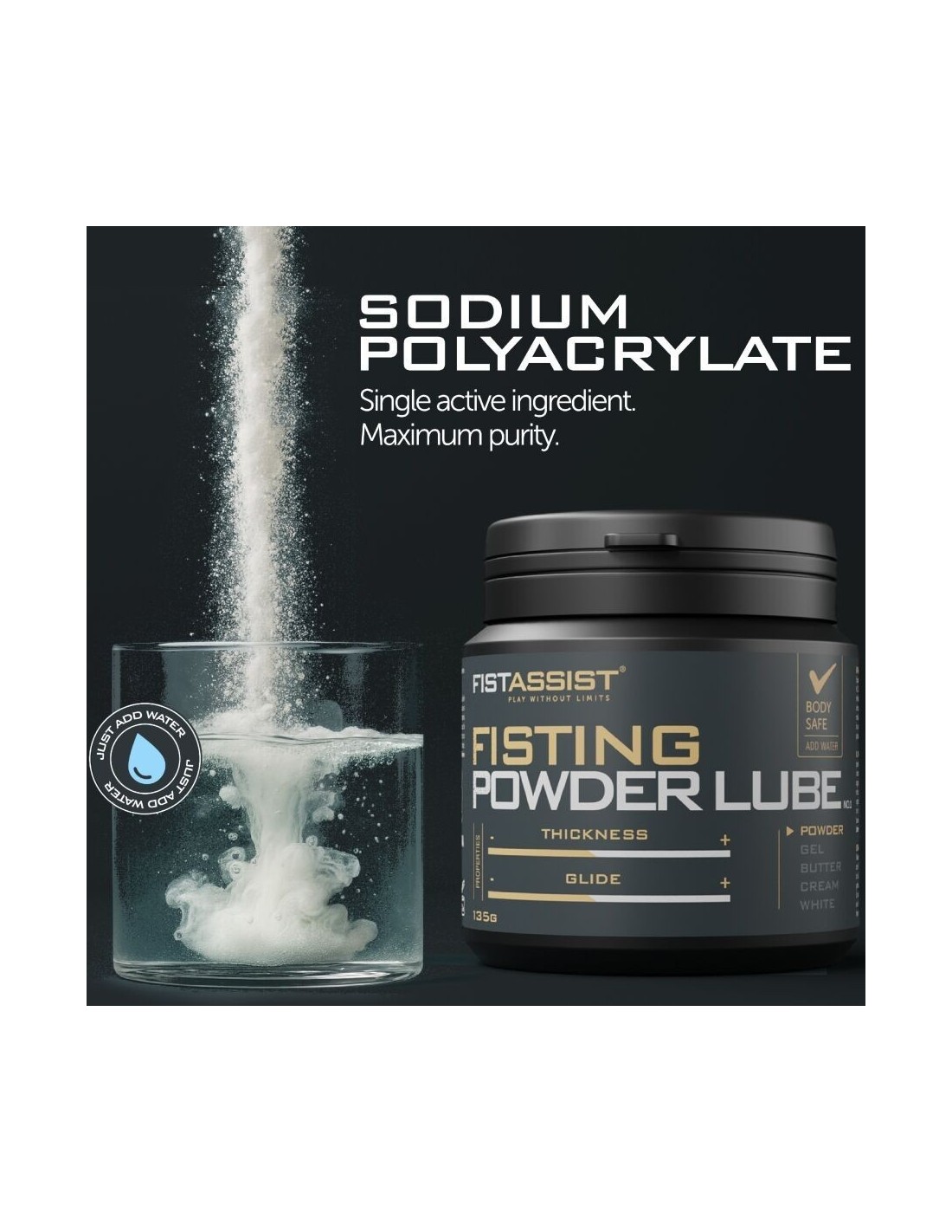 Il lubrificante in polvere Fist Assist è la soluzione definitiva per chi cerca il massimo controllo, precisione e prestazioni. La sua innovativa formula in polvere si attiva semplicemente aggiungendo acqua, consentendo di creare la consistenza ideale: da una texture leggera e setosa a una più densa e ammortizzata.