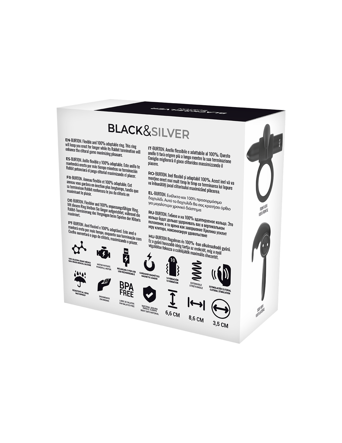 Ecco un regalo particolarmente zuccherato per il tuo migliore amico! Questo meraviglioso stimolatore maschile si maschera da anello per il pene e vuole addolcire le ore del tuo cuore. Con l39Anello BlackSilver potrai potenziare al meglio la tua lancia del piacere e regalare a te stesso e alla persona amata stimoli di formicolio. Con la sua superficie liscia come la seta e di colore nero intenso, realizzata in silicone medico, il BlackSilver ti mette in un39estasi sensuale non appena lo indossi. L39anello si allunga piacevolmente e quindi si adatta a tutte le taglie, proprio per accogliere e donare piacere al vostro pene.