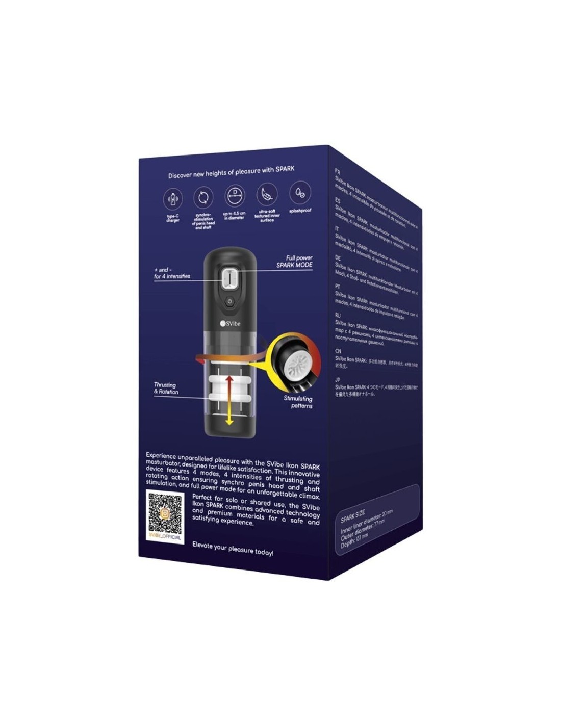 SVibe Ikon SPARK è progettato per offrire un39esperienza di piacere potente e profondamente realistica, combinando movimenti di spinta e rotazione perfettamente sincronizzati. Le sue molteplici modalità e livelli di intensità lavorano insieme per stimolare simultaneamente sia la testa che il corpo del pene, creando sensazioni dinamiche, coinvolgenti e altamente soddisfacenti.