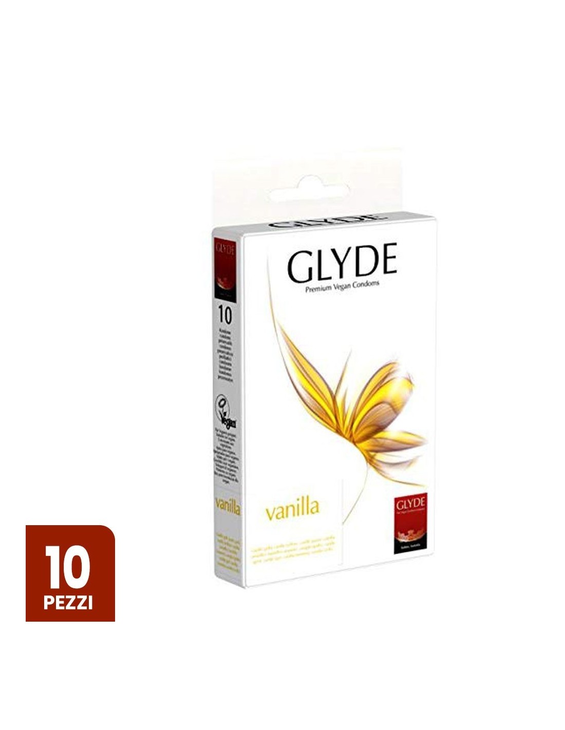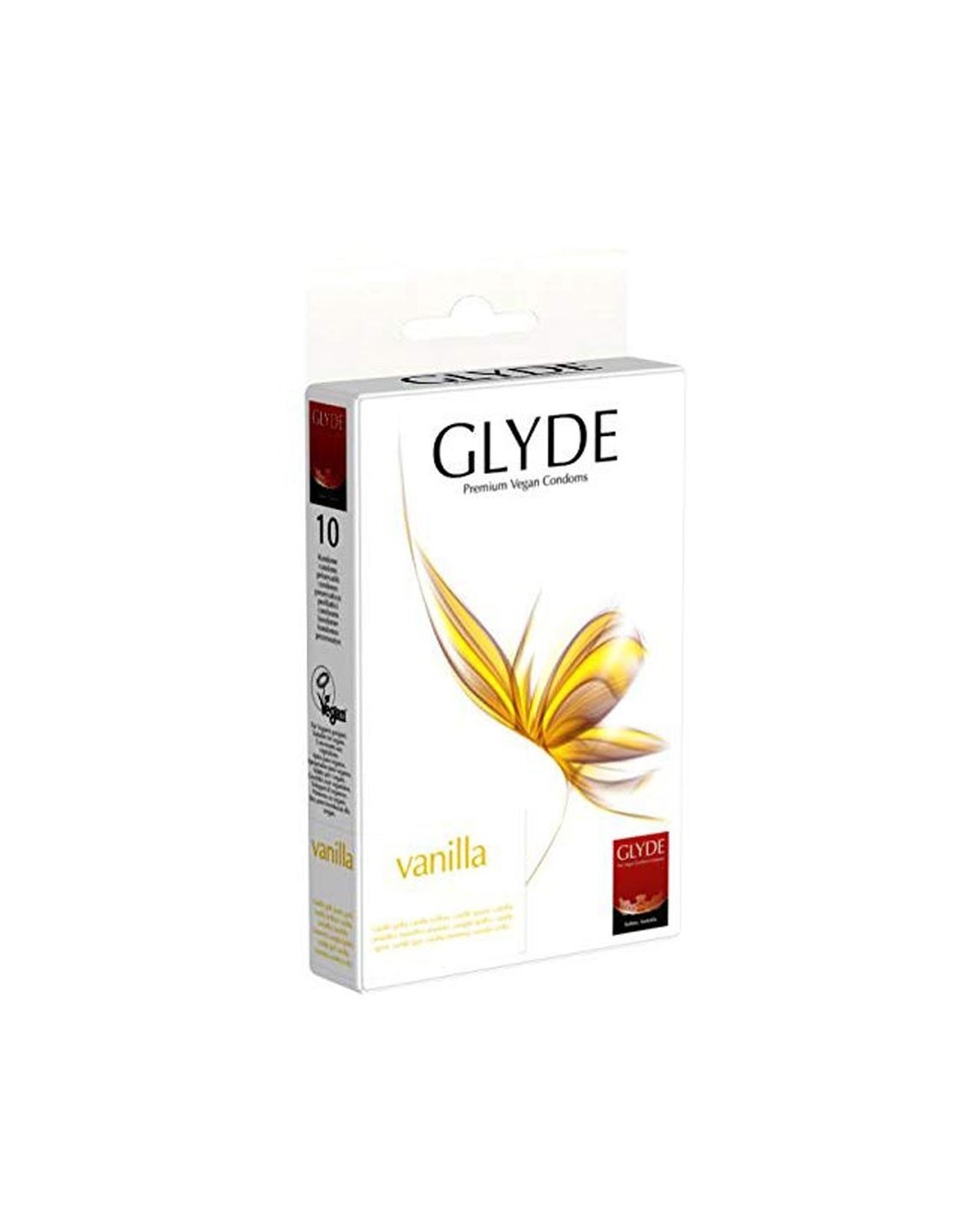 I preservativi vegan Glyde aromatizzati alla vaniglia sono realizzati con materie di origine vegetale e l'aroma è esaltato dall'impiego di estratti di frutta e piante, che coprono l'odore del lattice senza zuccheri aggiunti e composti chimici.