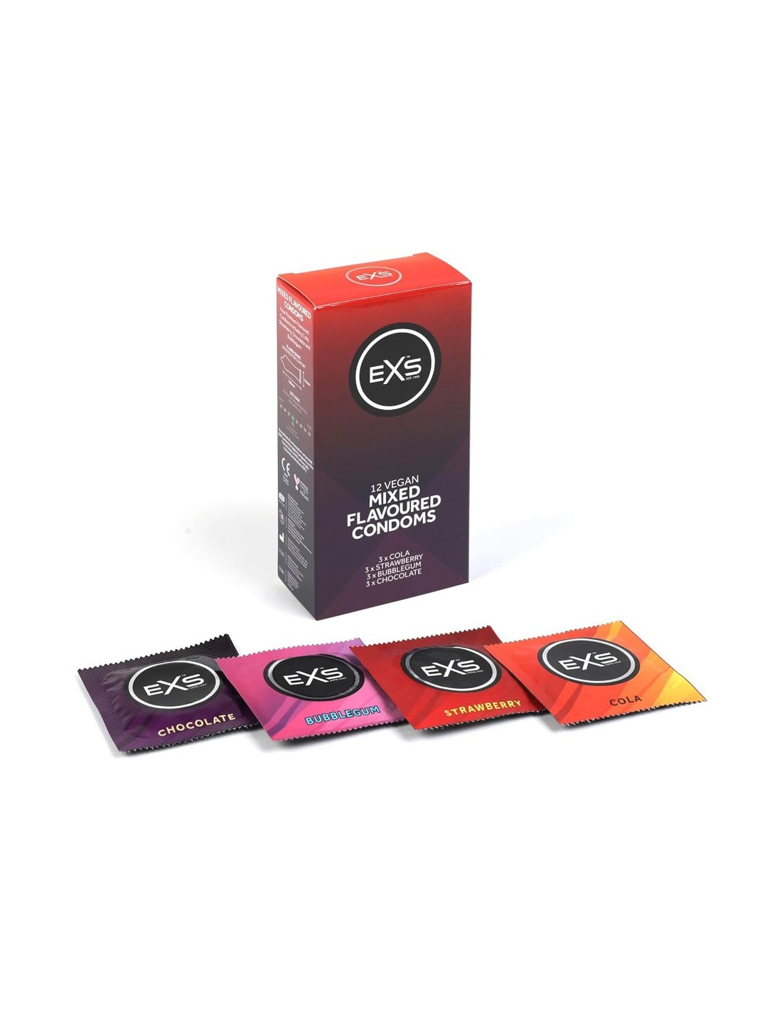 Scopri il piacere di un'esperienza sensoriale unica con i preservativi aromatizzati EXS Mixed Flavoured. Questa confezione da 12 profilattici offre una varietà di gusti deliziosi: cola, fragola, cioccolato e bubblegum. Ideali per chi desidera aggiungere un tocco di originalità e dolcezza ai propri momenti intimi, garantendo al contempo la massima protezione.