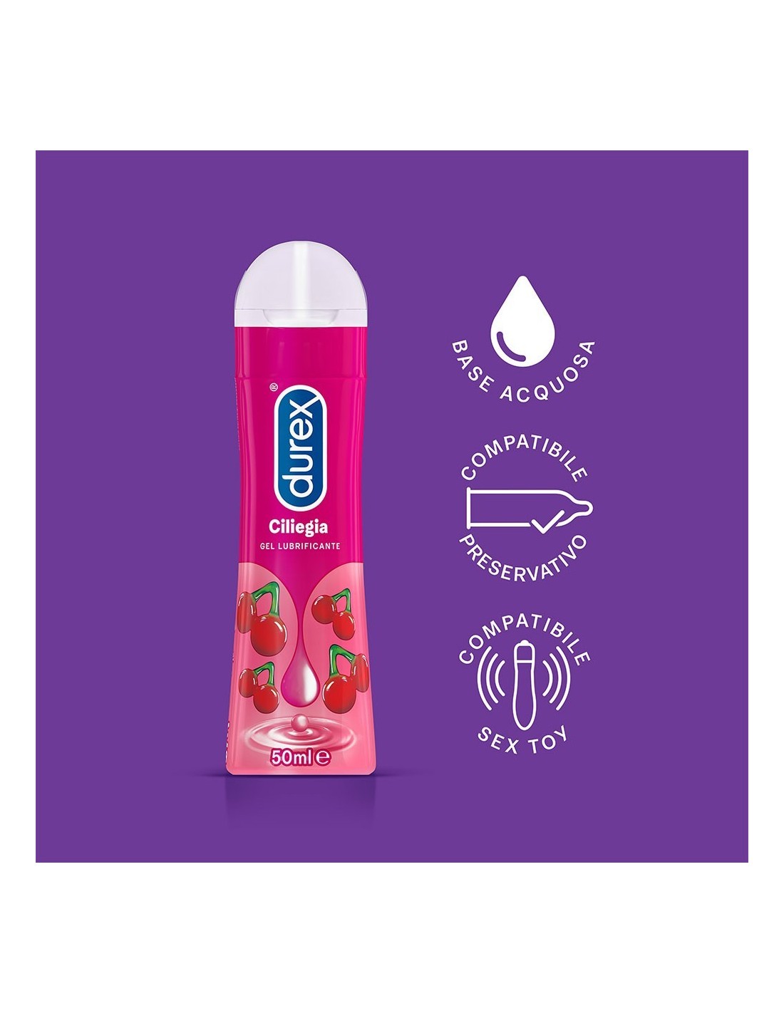 Durex Gel Very cherry è ideale per l'utilizzo con i profilattici Durex e può essere applicato sul profilattico già indossato, ma non è un contraccettivo e non contiene spermicida. Ecco le sue caratteristiche
