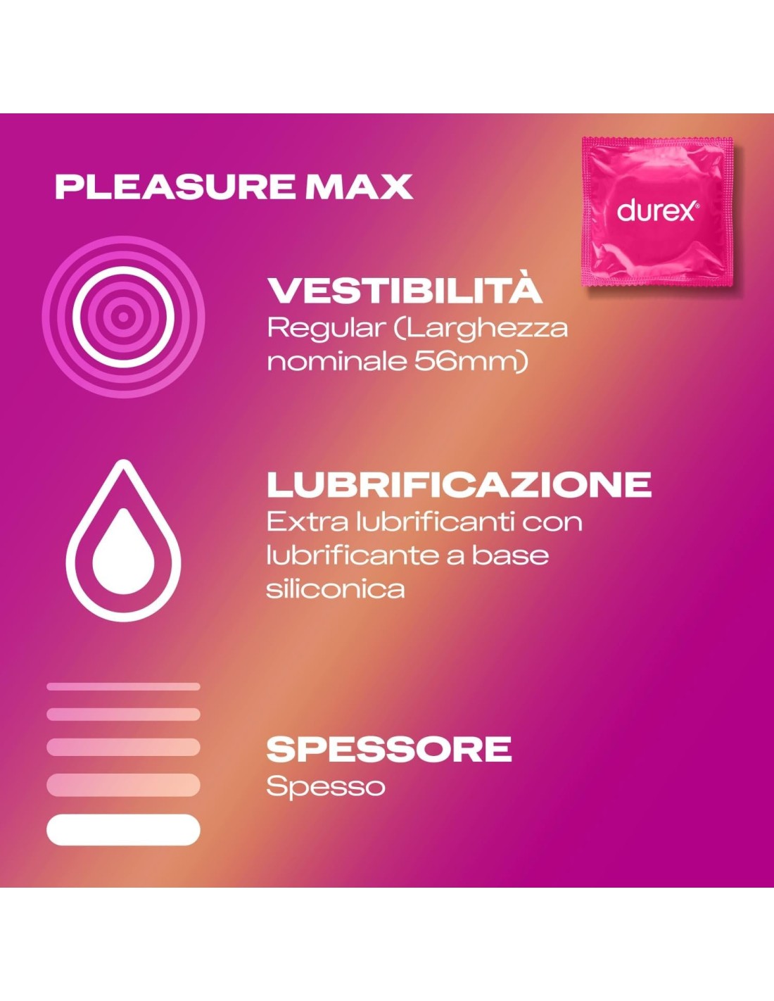 - 10 profilattici Defensor per un comfort elevato; 10 profilattici Pleasuremax per un'elevata stimolazione;
